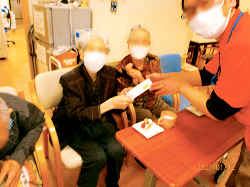 12日、入居者Y様の誕生会が開催されました。今月はお一人様の誕生会。