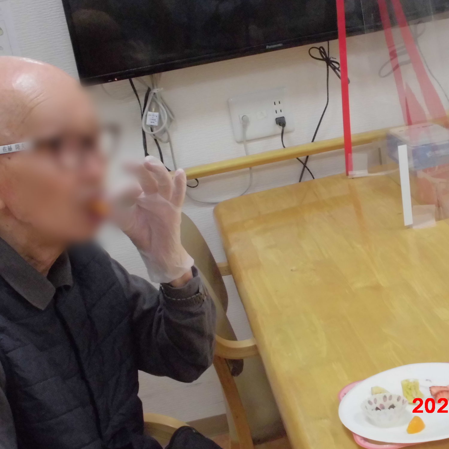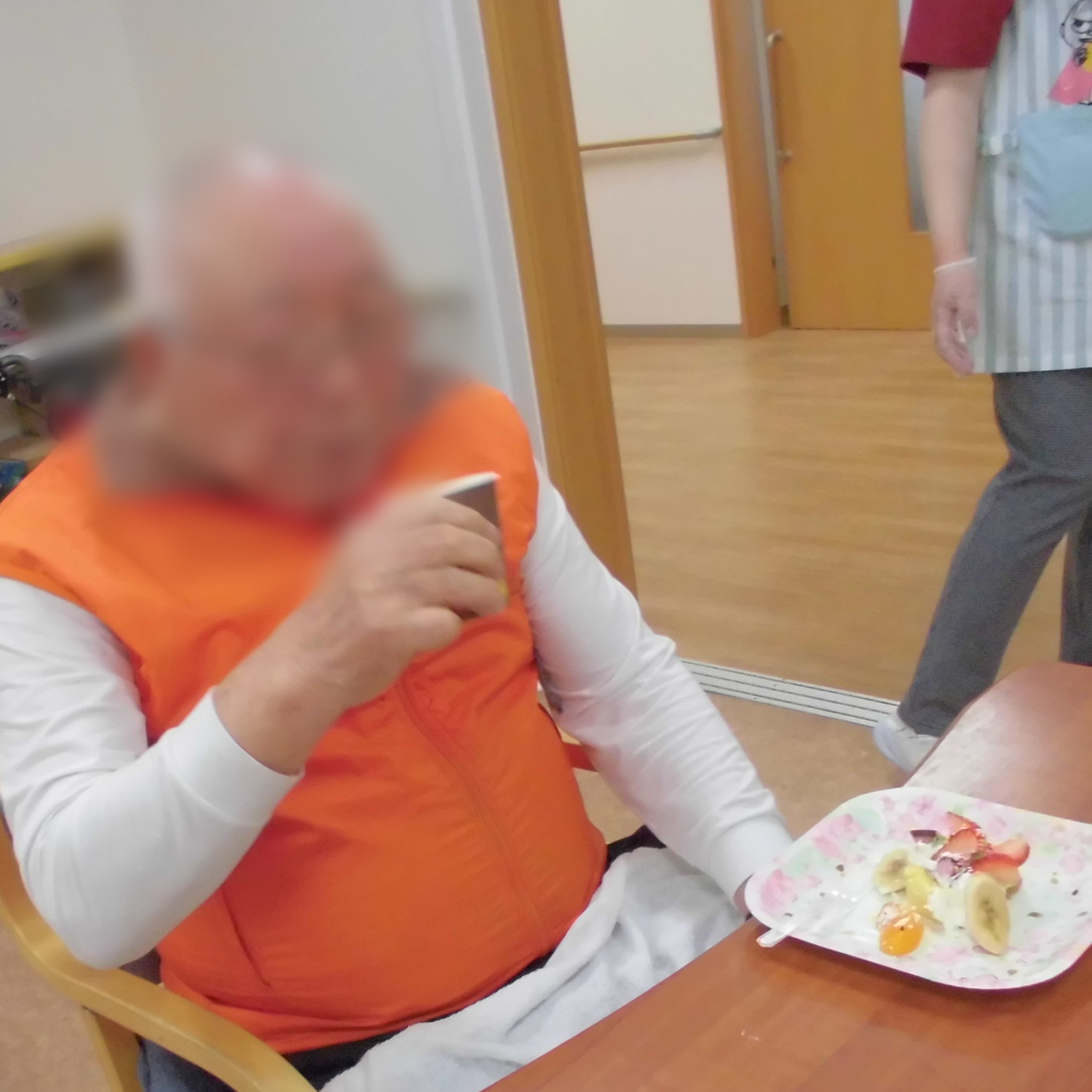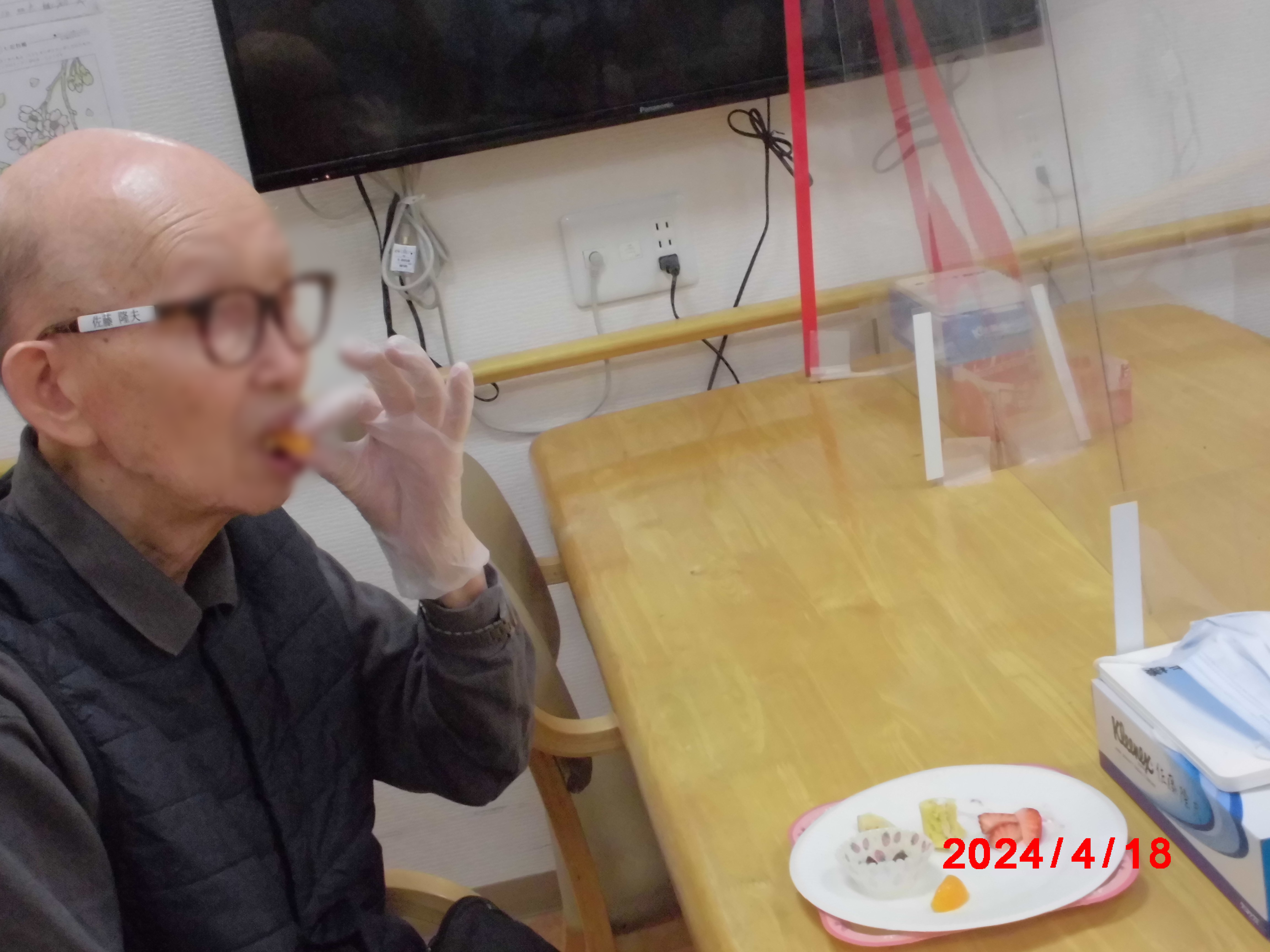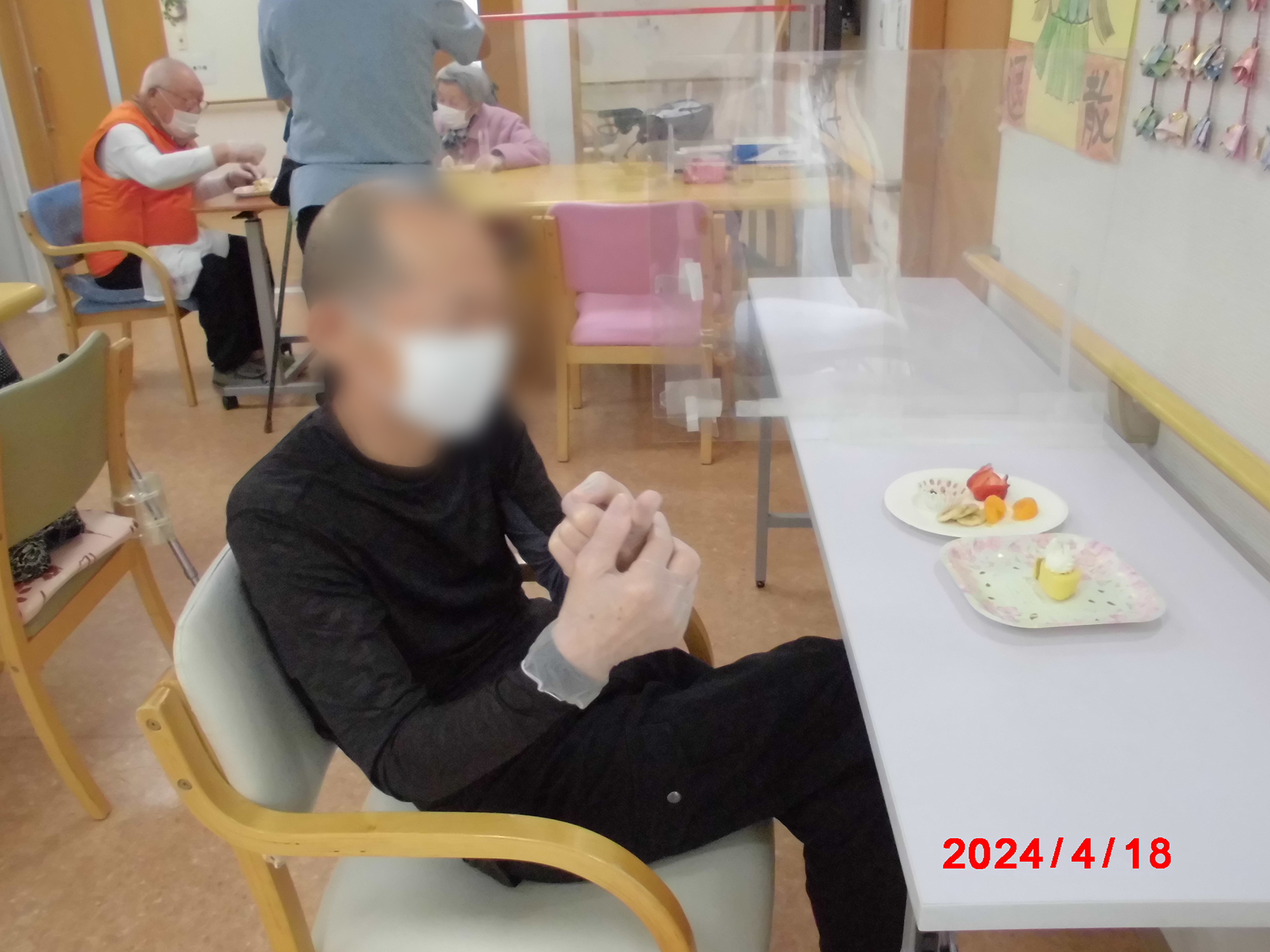 食事の時間になると、「あらぁ!素敵!」「おいしいわぁ!」「お彼岸だね?」等々うららかな声が上がりました。I様の誕生日だと伝えると、「おめでとう~」の声に!