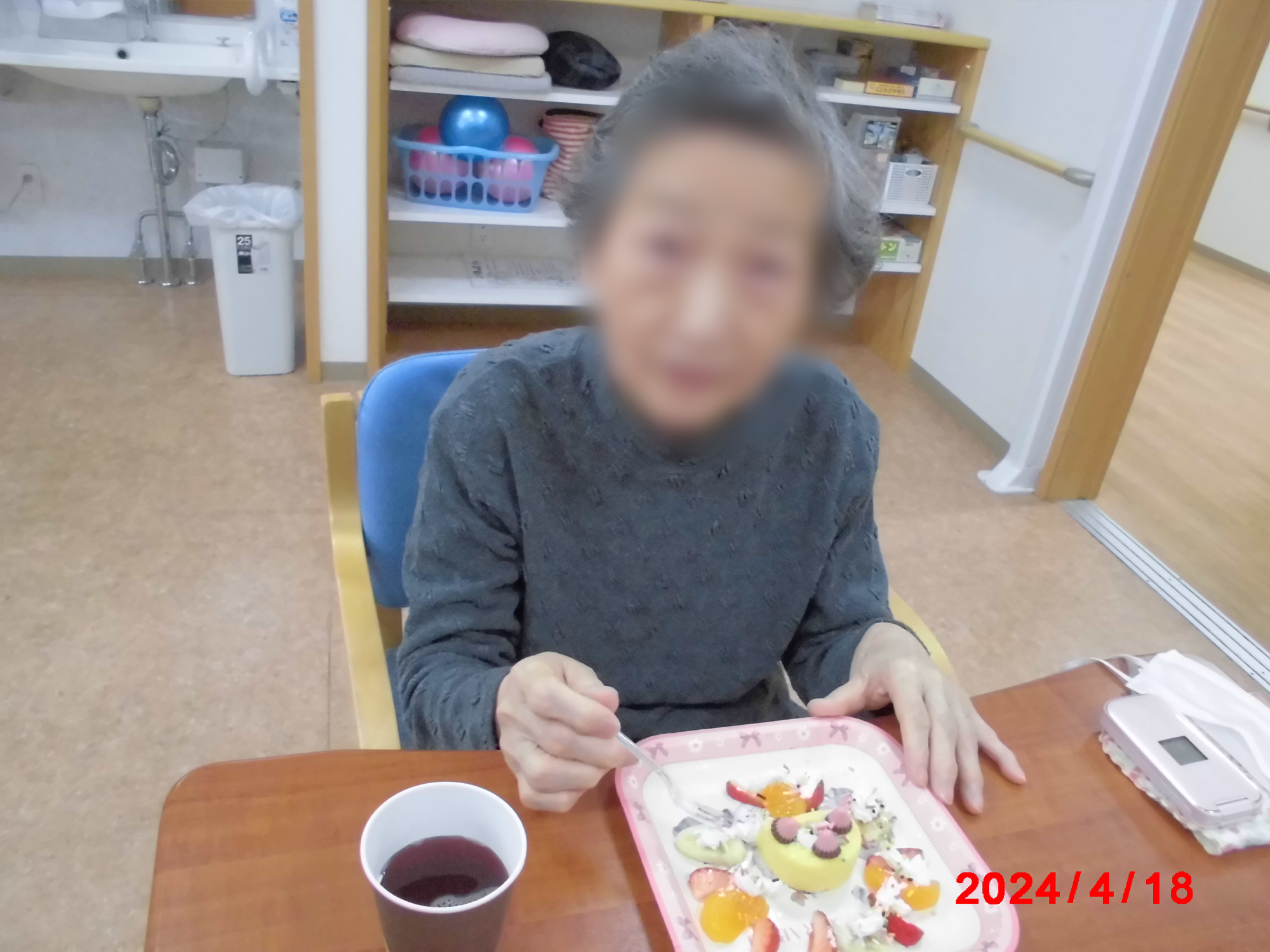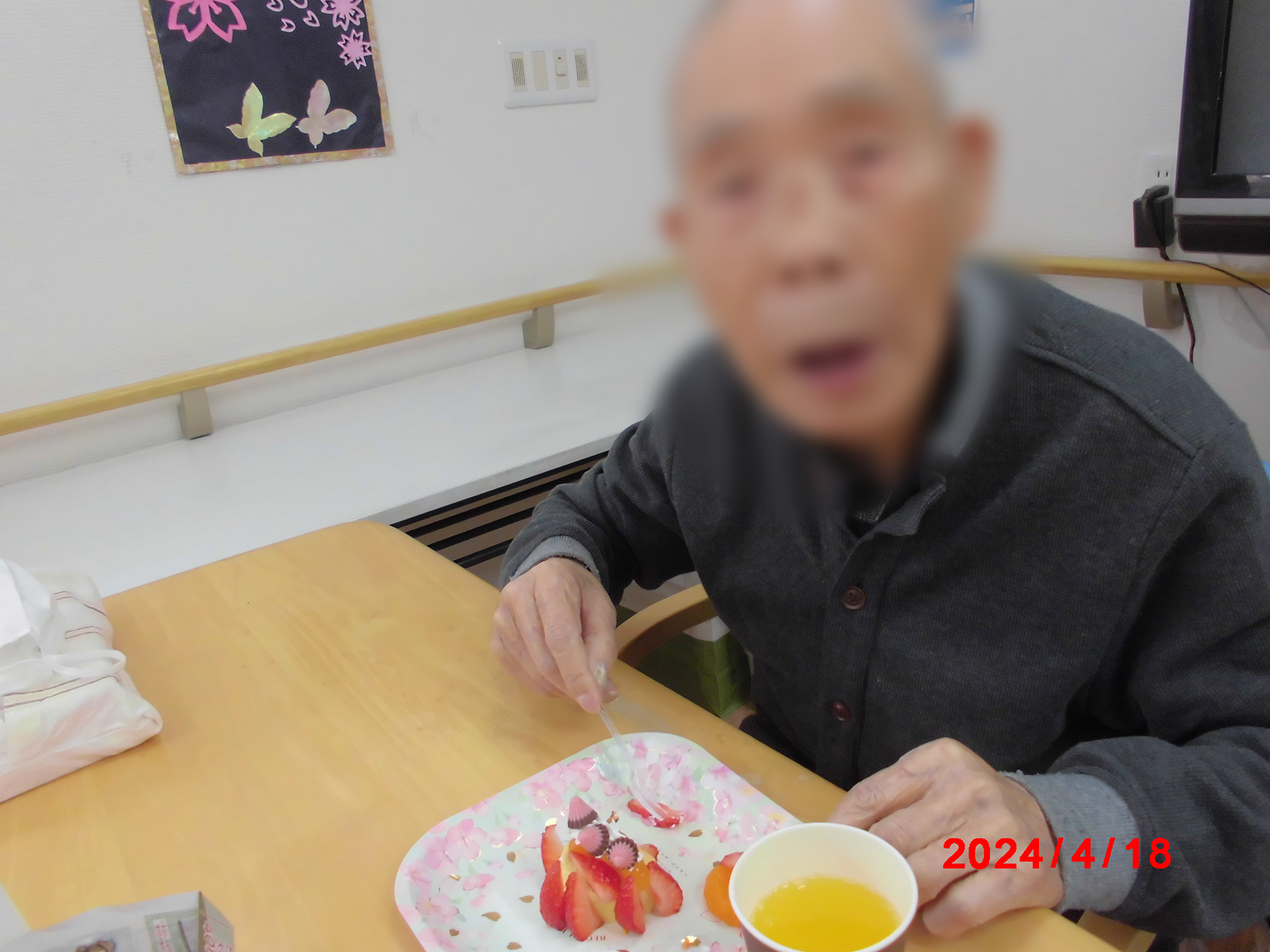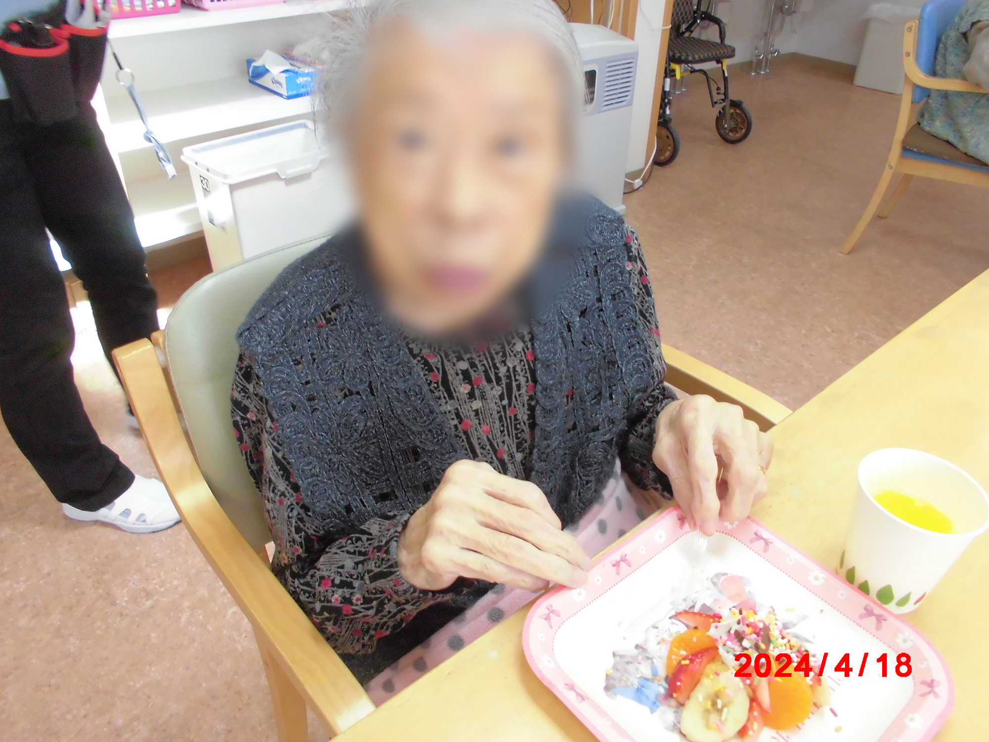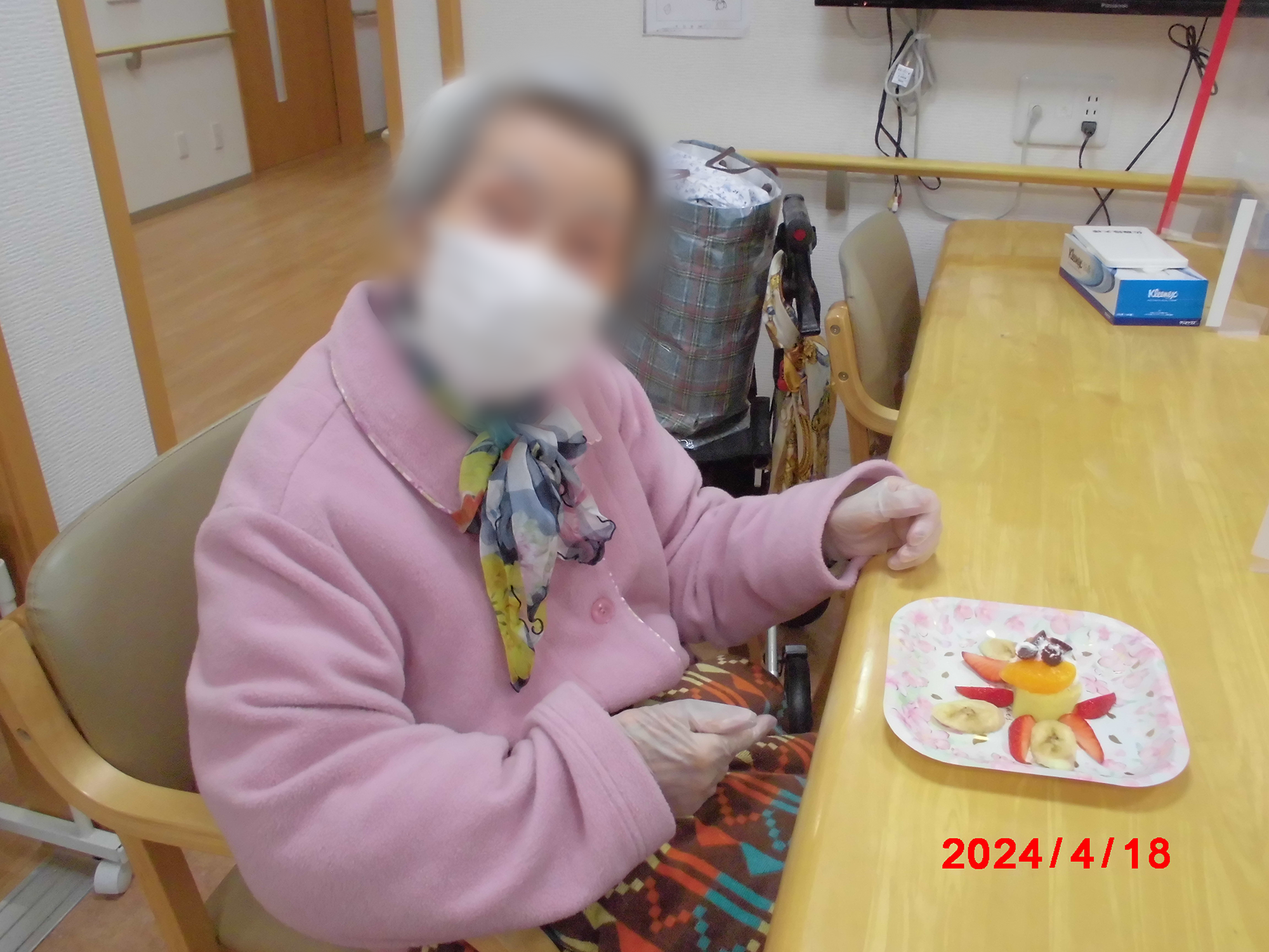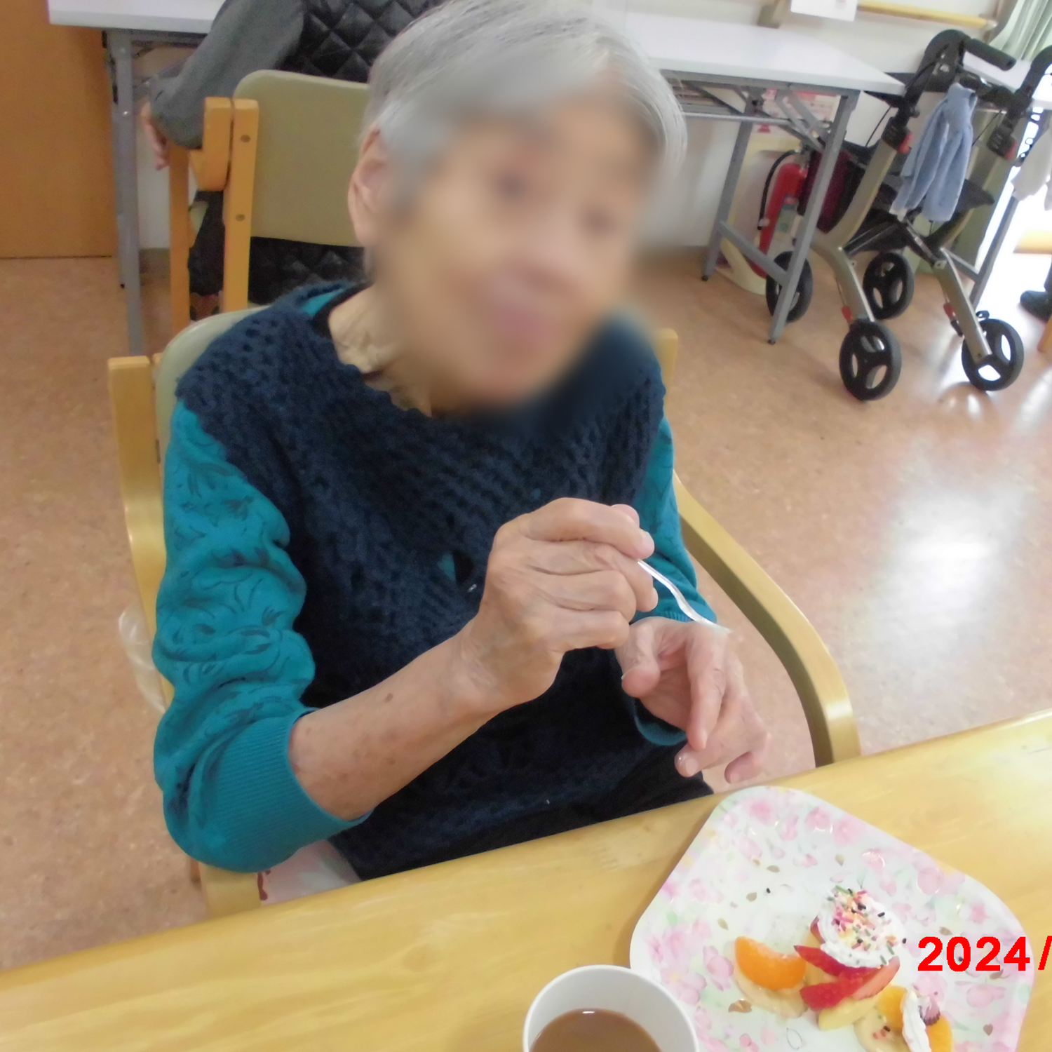 12日、入居者Y様の誕生会が開催されました。今月はお一人様の誕生会。