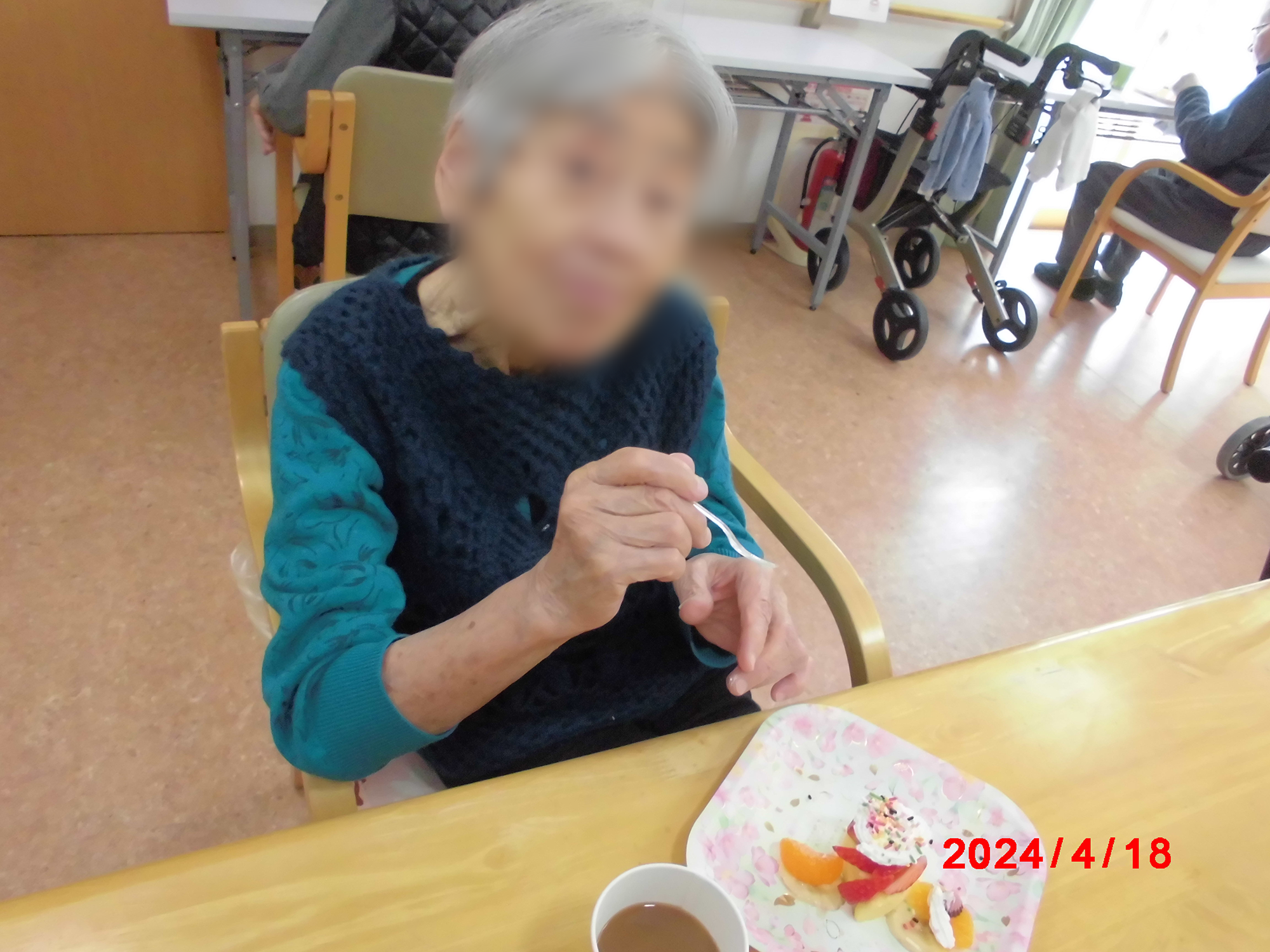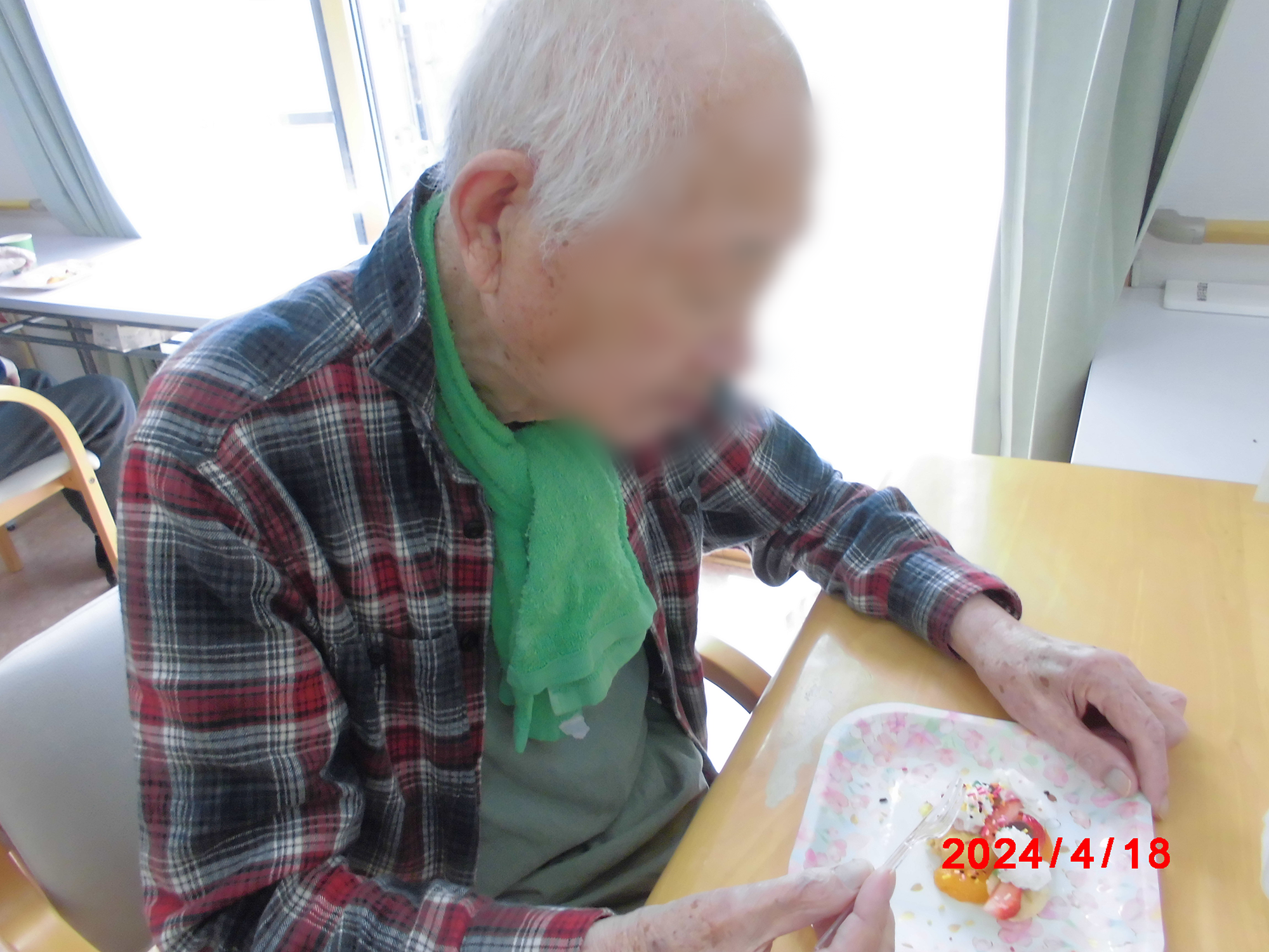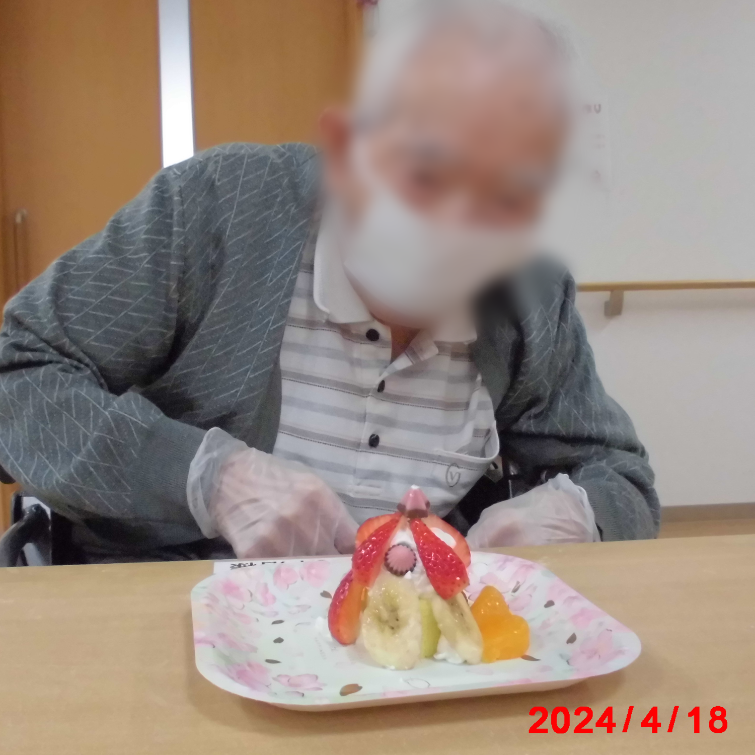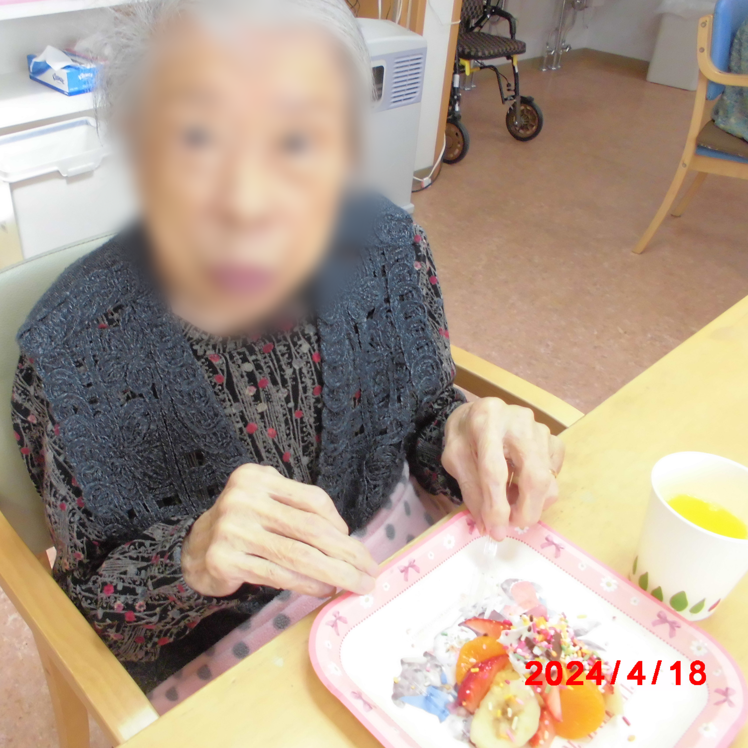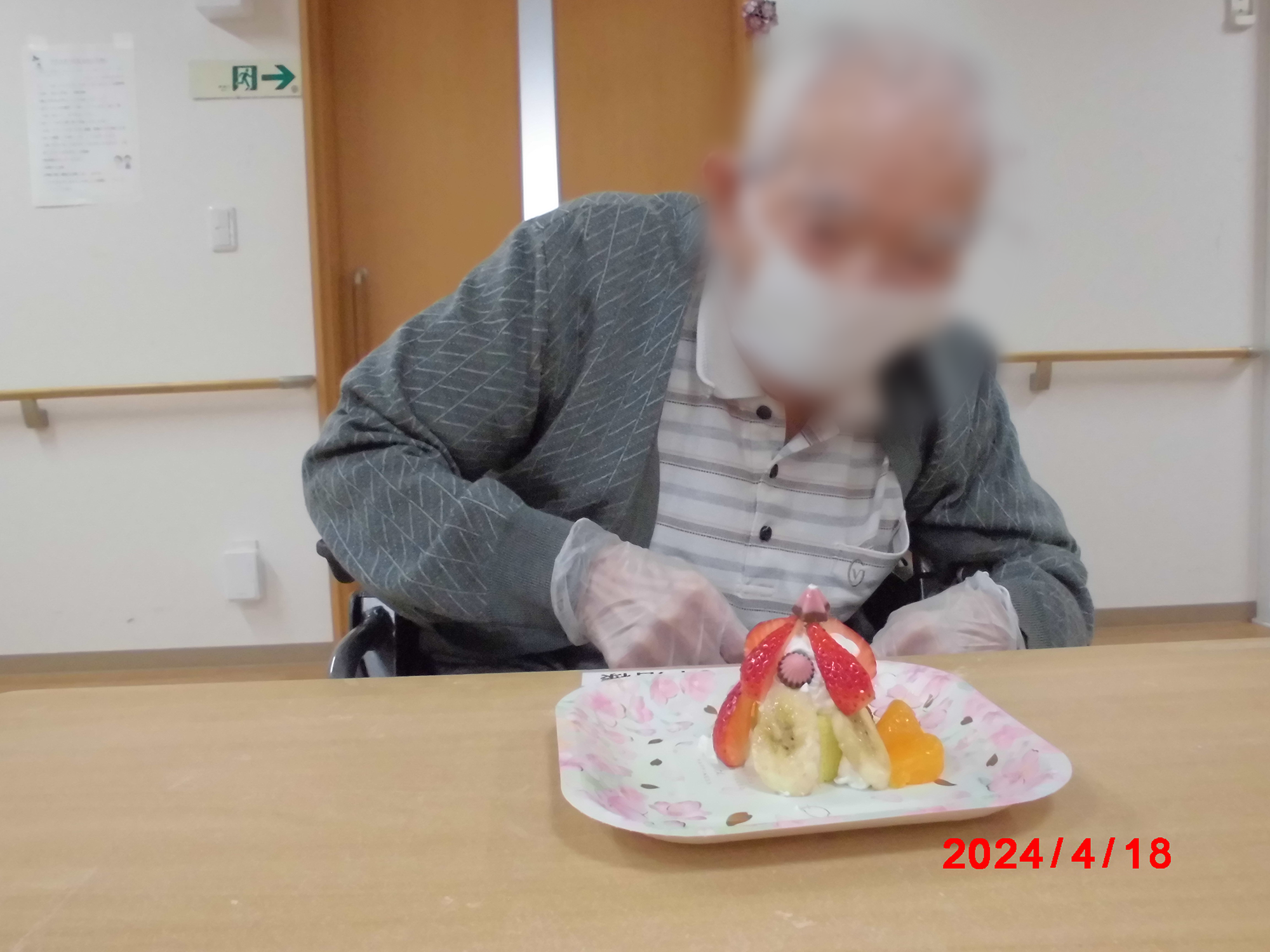 12日、入居者Y様の誕生会が開催されました。今月はお一人様の誕生会。
