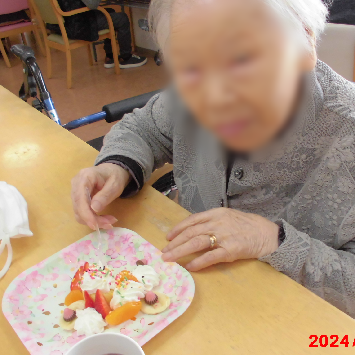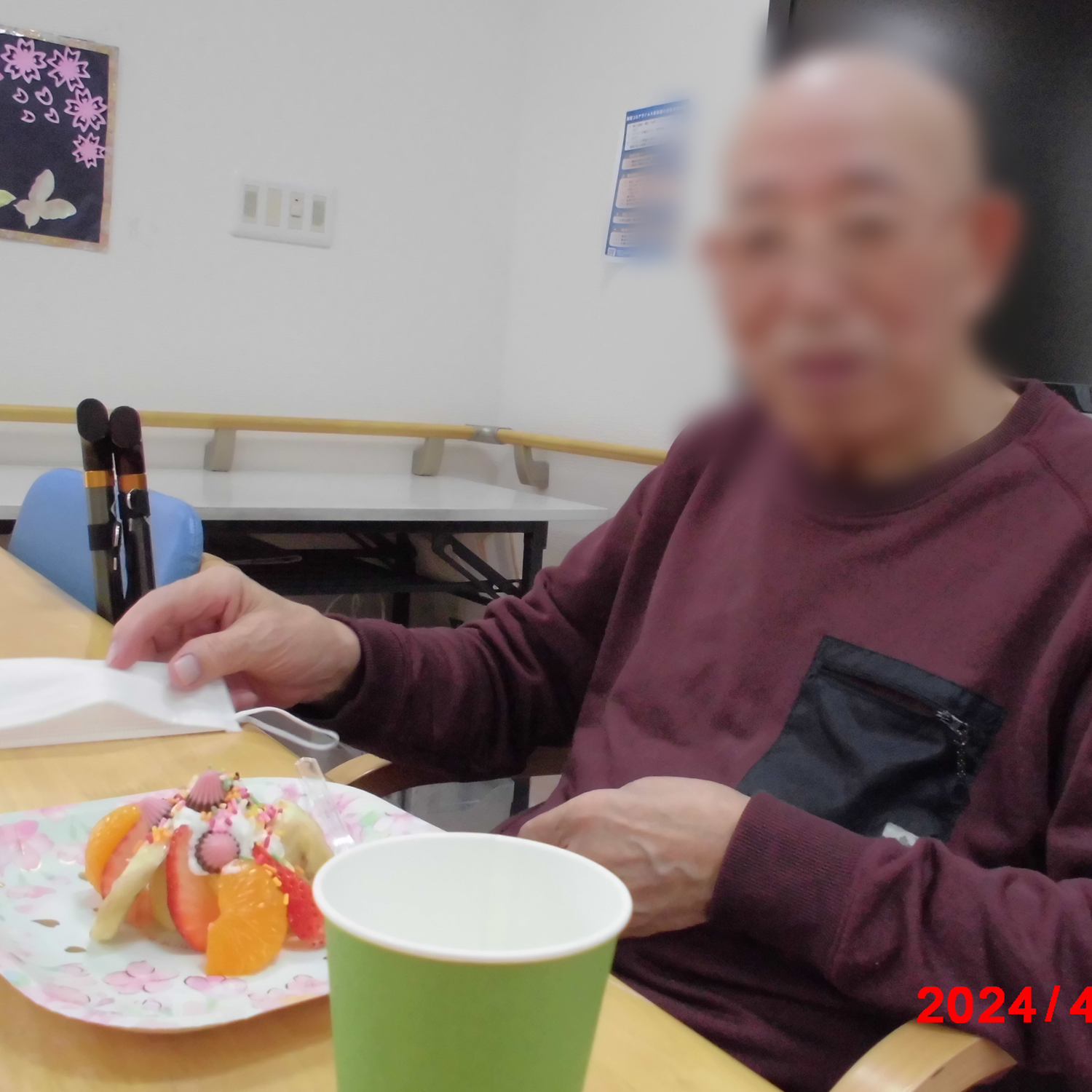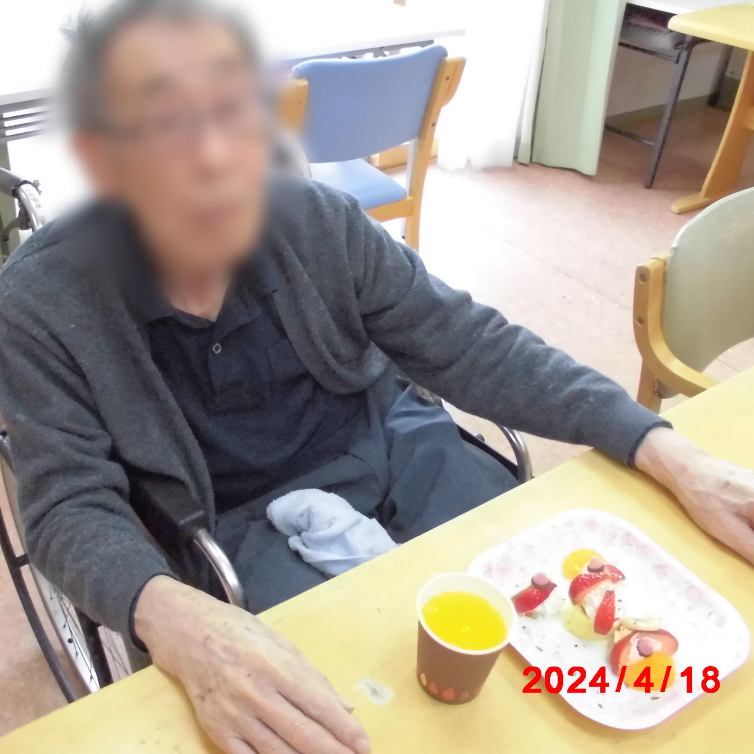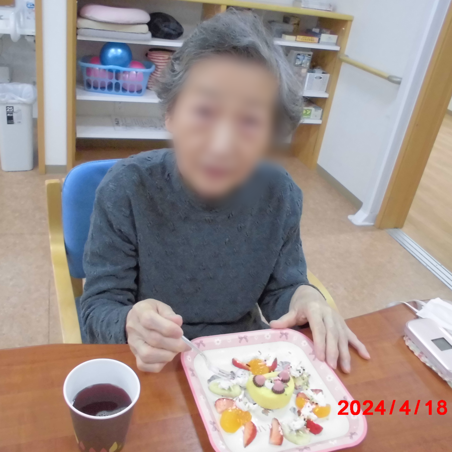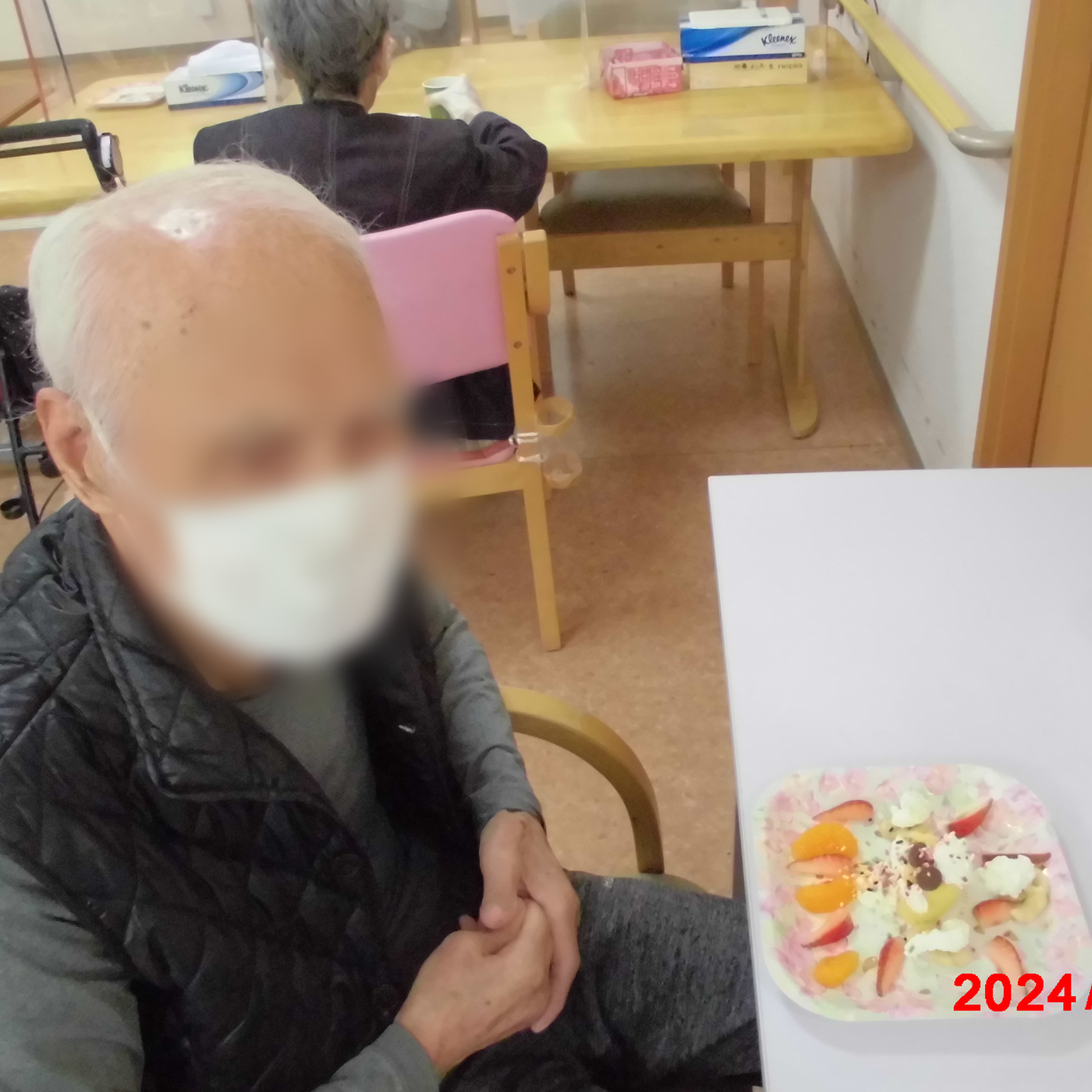 12日、入居者Y様の誕生会が開催されました。今月はお一人様の誕生会。