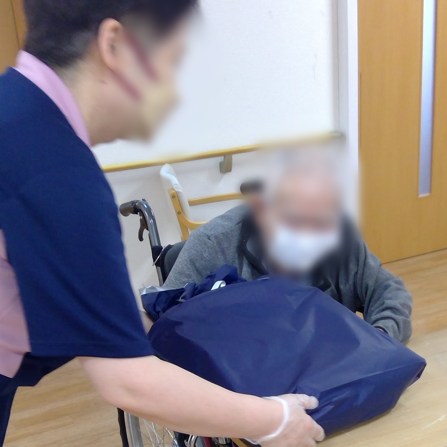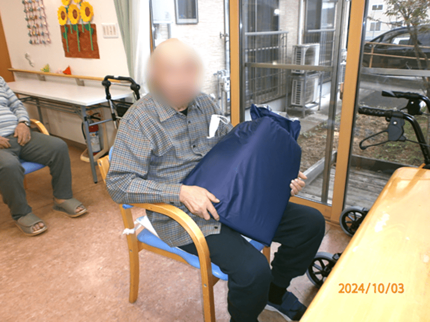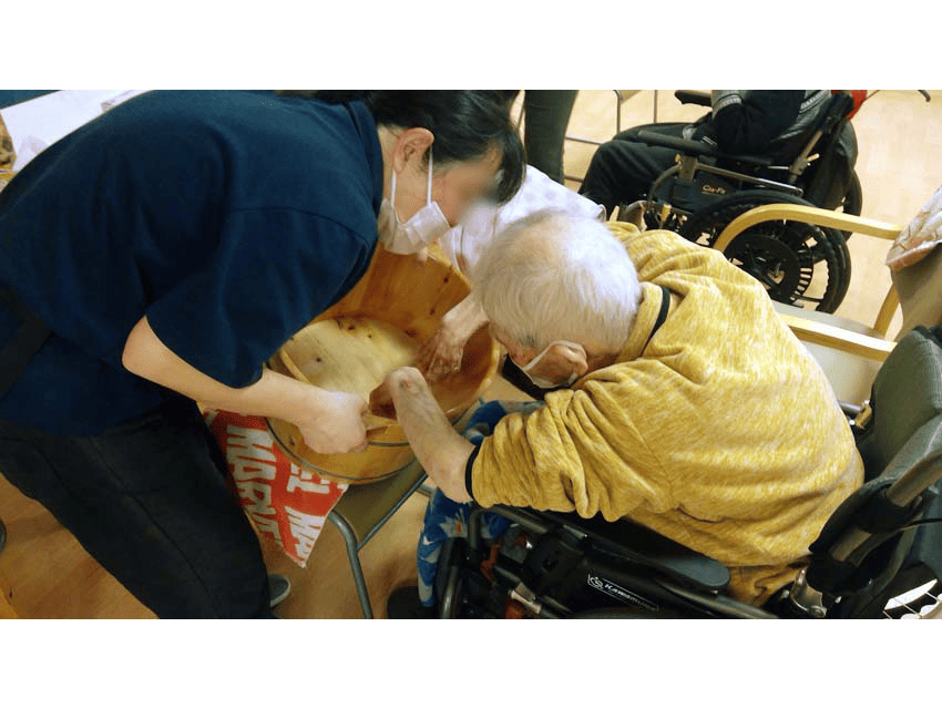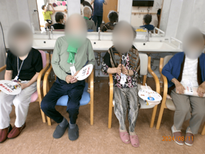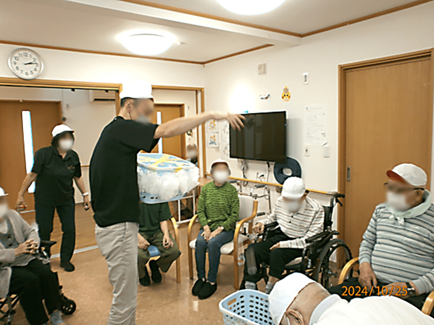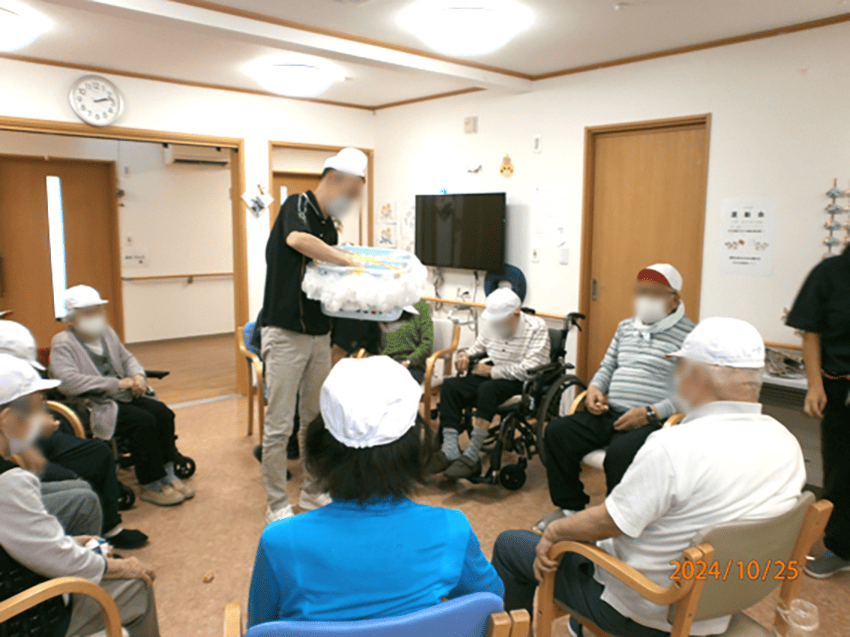 早速入居者様に体験していただきました。「いい香りだね」「きもちいい」とたくさんの笑顔が見られました。