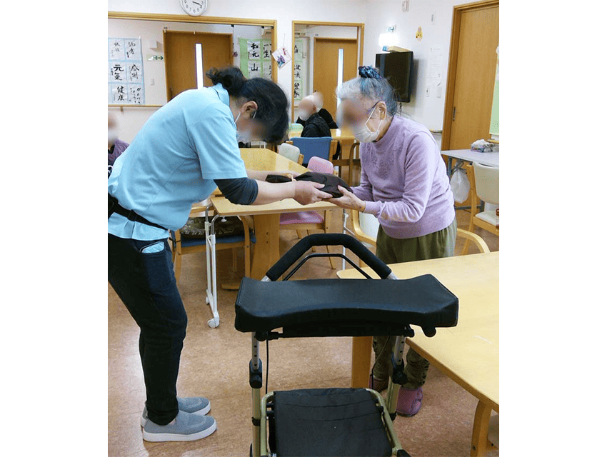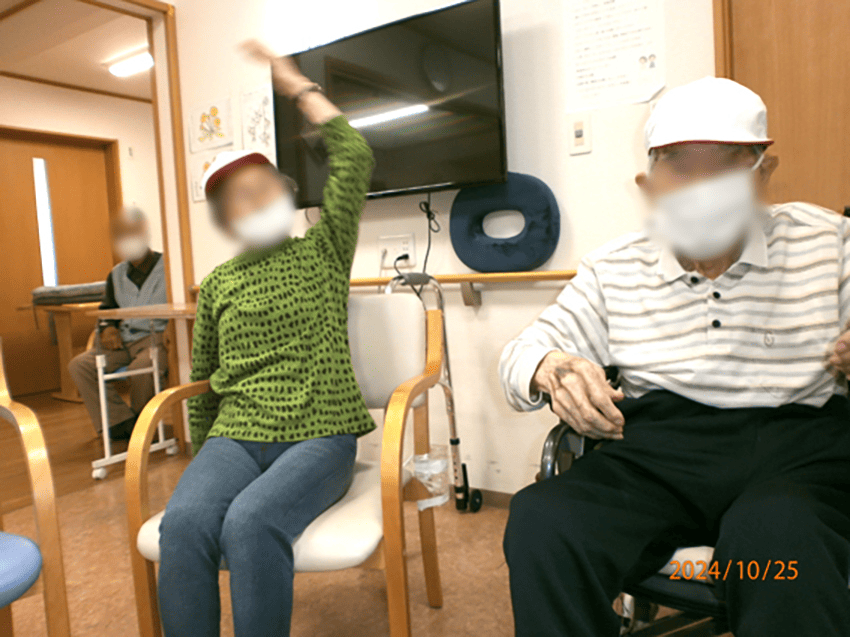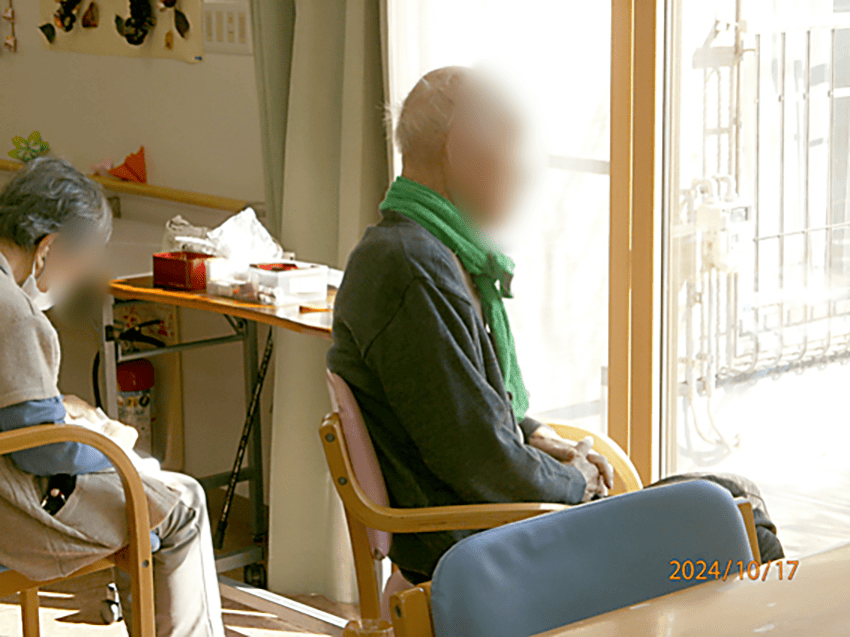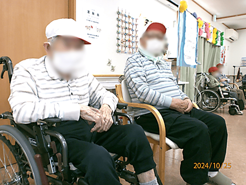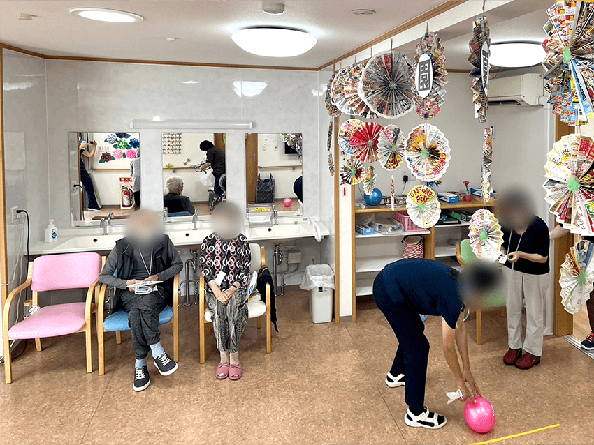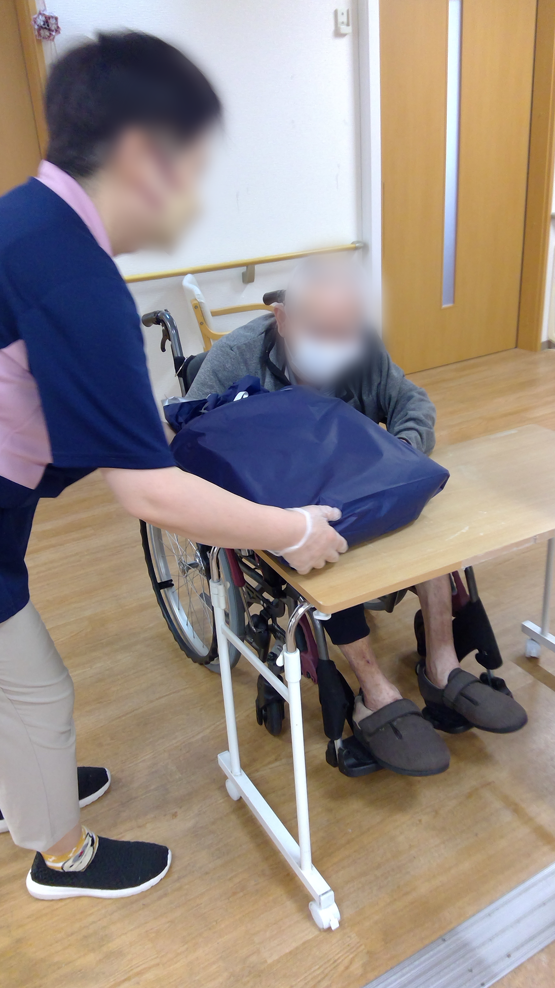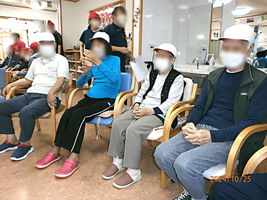 早速入居者様に体験していただきました。「いい香りだね」「きもちいい」とたくさんの笑顔が見られました。