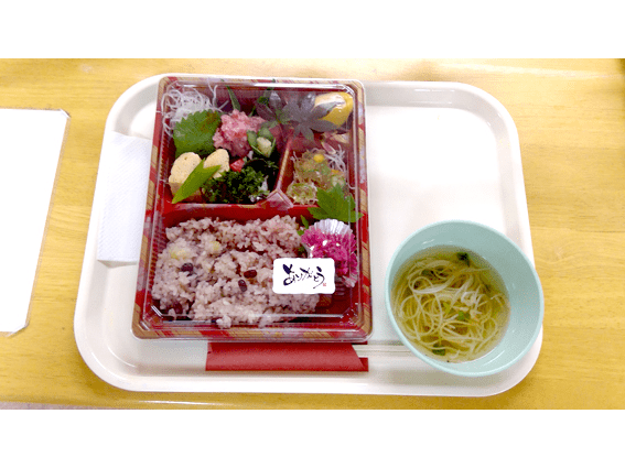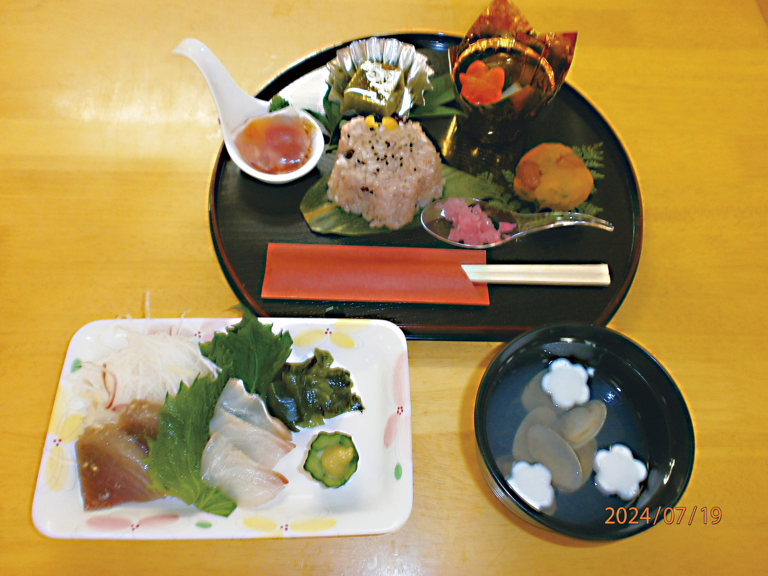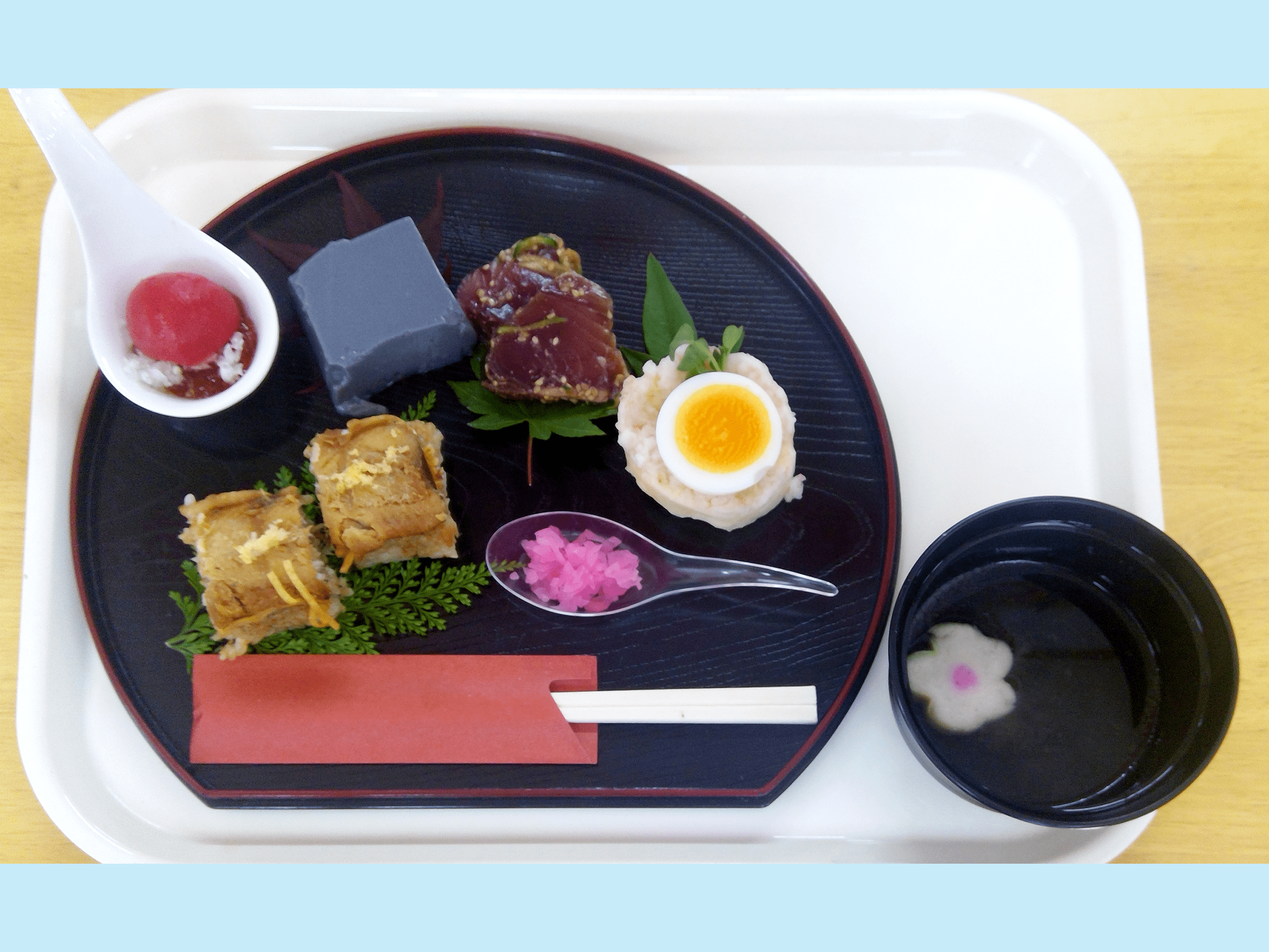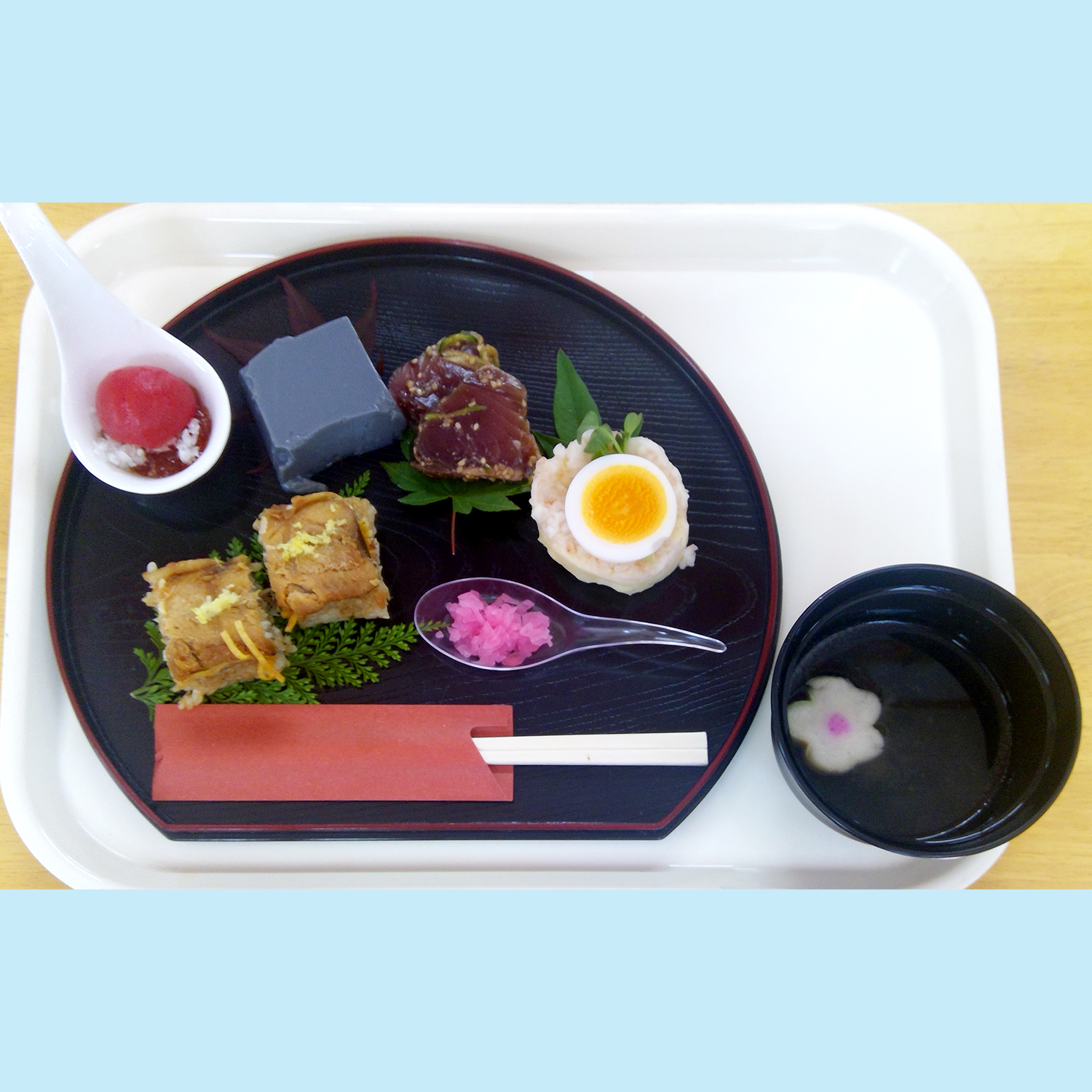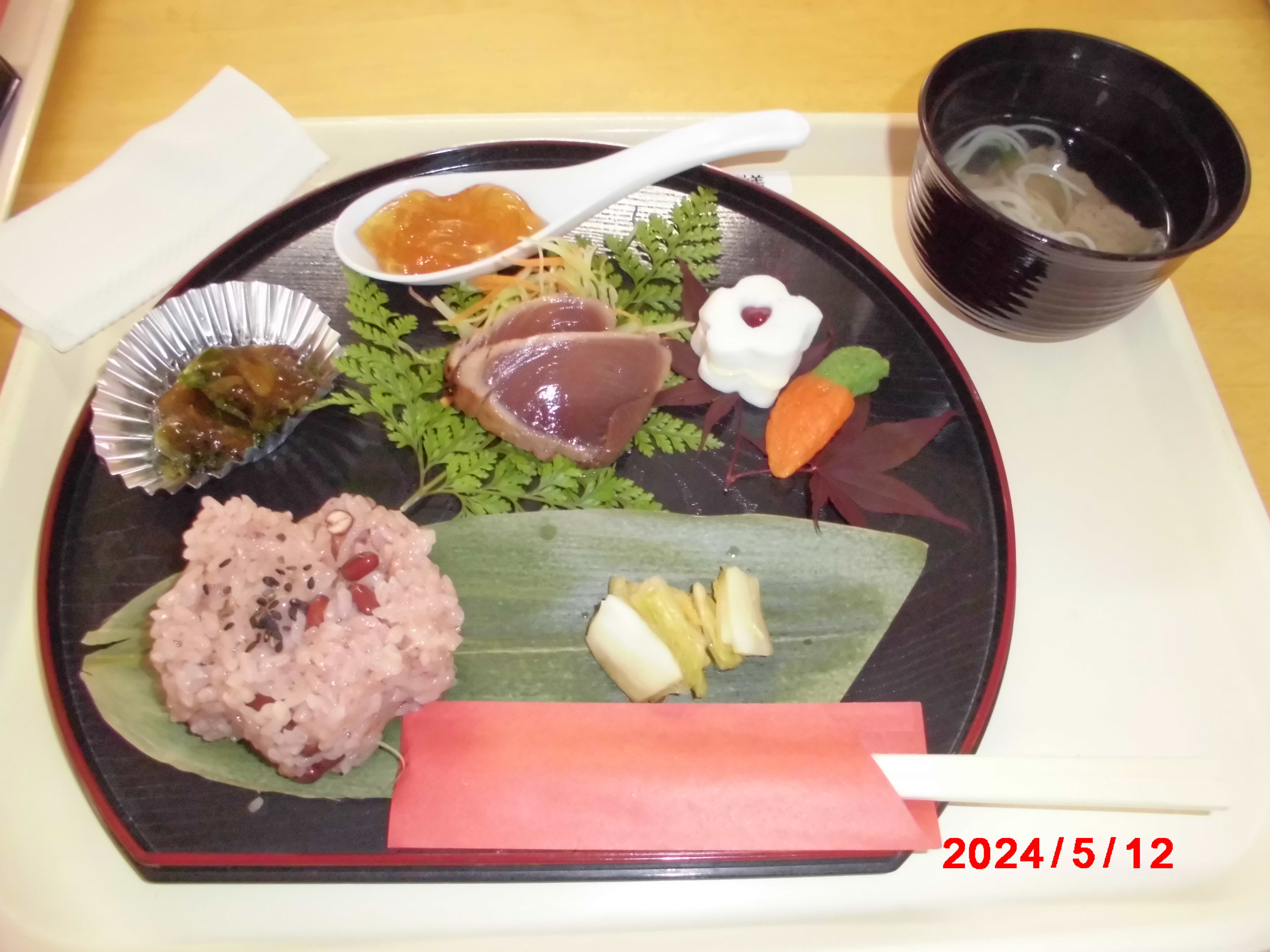 お昼ご飯は味はもちろんのこと、見た目も楽しめる誕生日特別メニューでした。春鰹のお刺身は皆さんとても喜ばれており、「旬」を味わっていただきました。