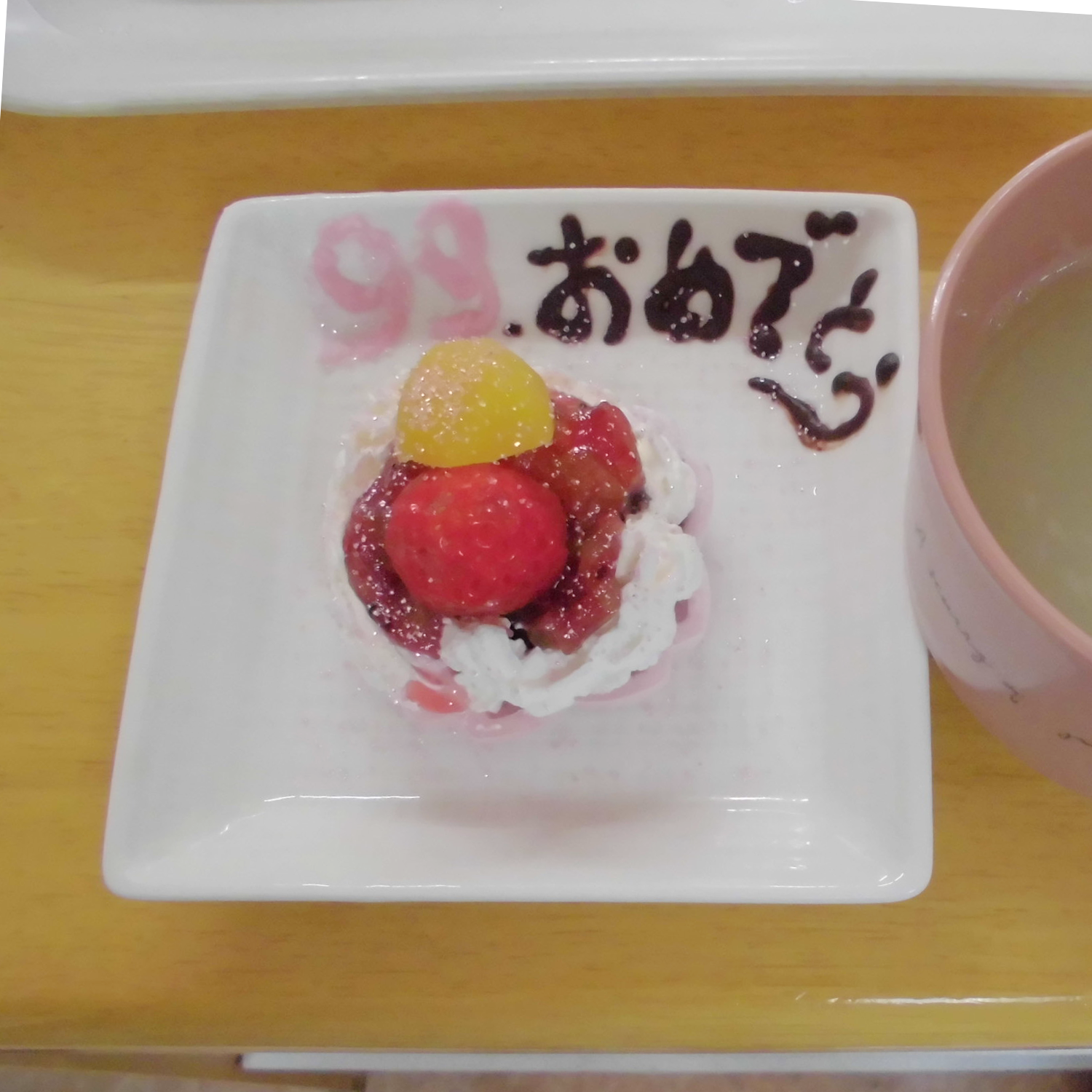 今月は3名の方が誕生日を迎えました。今回も厨房スタッフ手作りのお膳とケーキ!