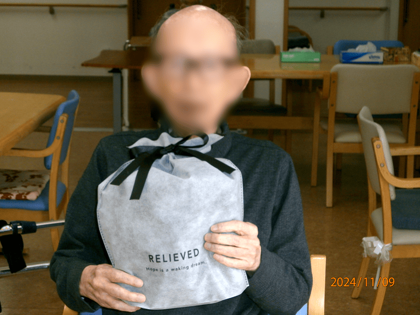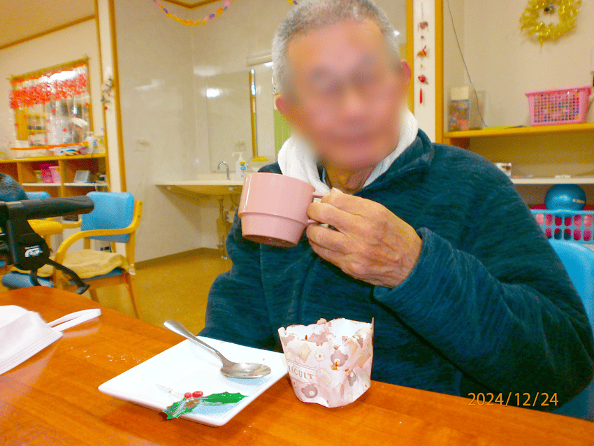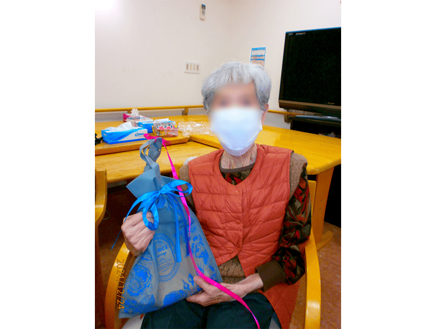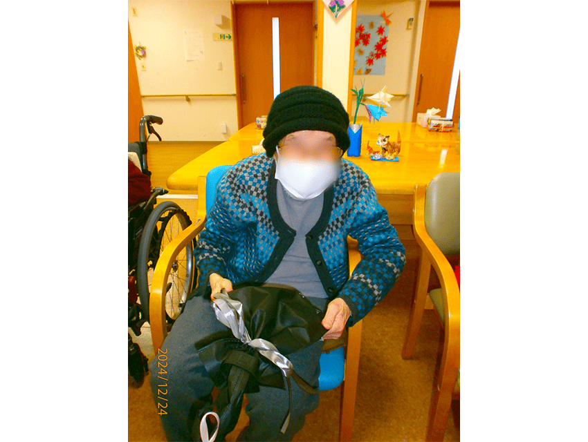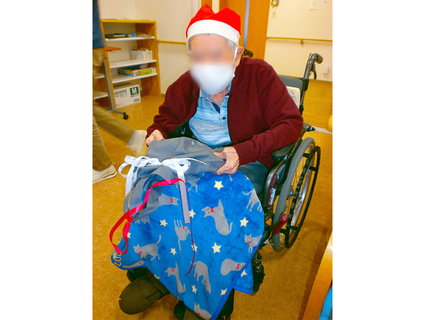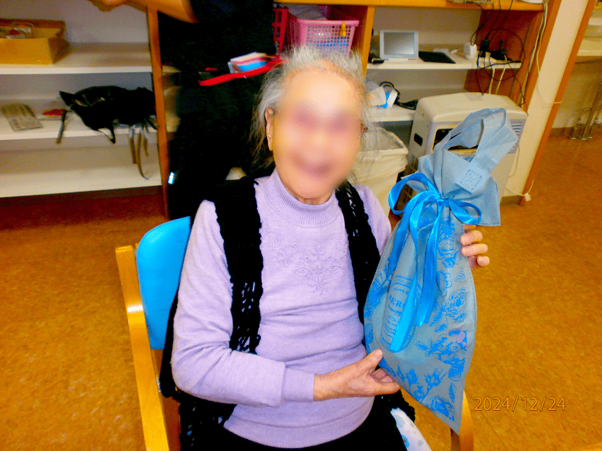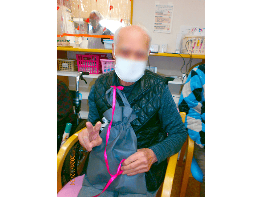 12月8日、こすもす園12月お誕生会が行われました。今月はS様お一人のお誕生会でした。S様は入所して初めての誕生会。プレゼントを受け取ると涙を流して喜ばれました。プレゼントはひざ掛け。こんなに喜んでいただけるとは!! 職員も感激してしまった誕生会でした。