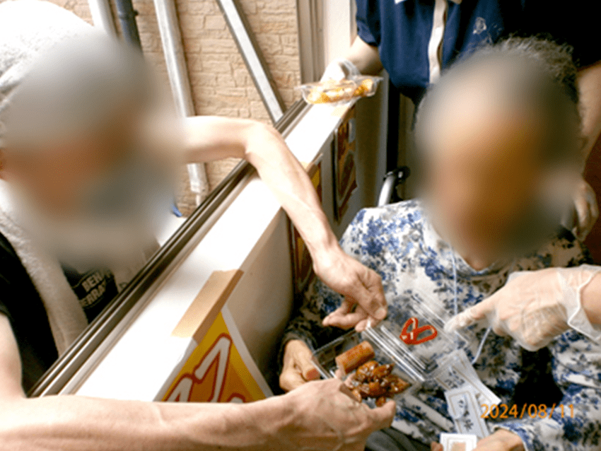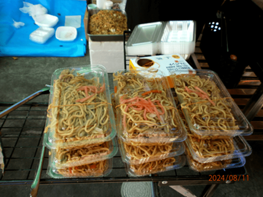 焼きそばやフランクフルト、暑い時にはやっぱりかき氷!等など、引換券と交換した利用者様は満足気な表情で召し上がっていました。
