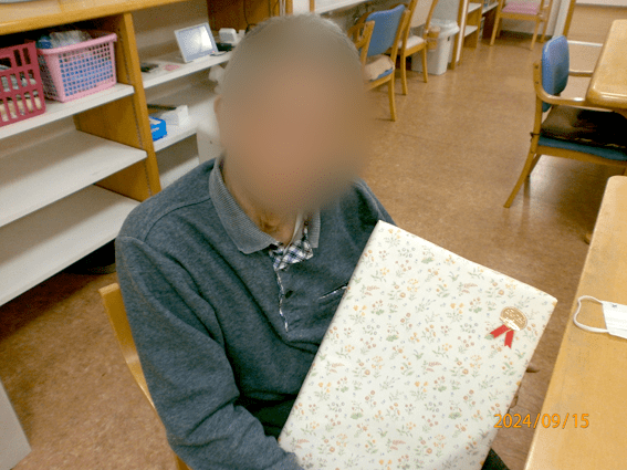 ささやかですが、プレゼントをお渡しさせていただきました。「何歳になってもプレゼントってうれしいね」と満面の笑顔を見せてくださいました。