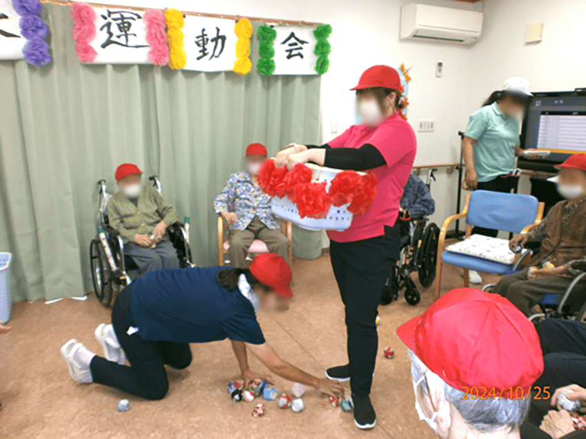 「こんなに笑ったのは本当に久しぶりだった」と言ってくださる方もいました。利用者様だけでなく、スタッフも本当に楽しい時間を過ごすことができ、こすもす園の絆がさらにグッと深まったと感じられるような運動会でした。