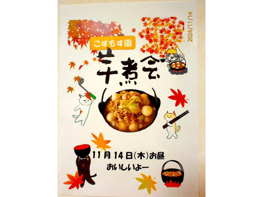 ただ、今回のお誕生会の写真を誤って消去してしまいました。楽しみにされていた方には大変申し訳ありませんでした。誕生会主役3名様の写真は来月のこすもす園だよりに掲載させていただきます。何卒宜しくお願い致します。