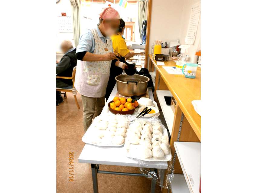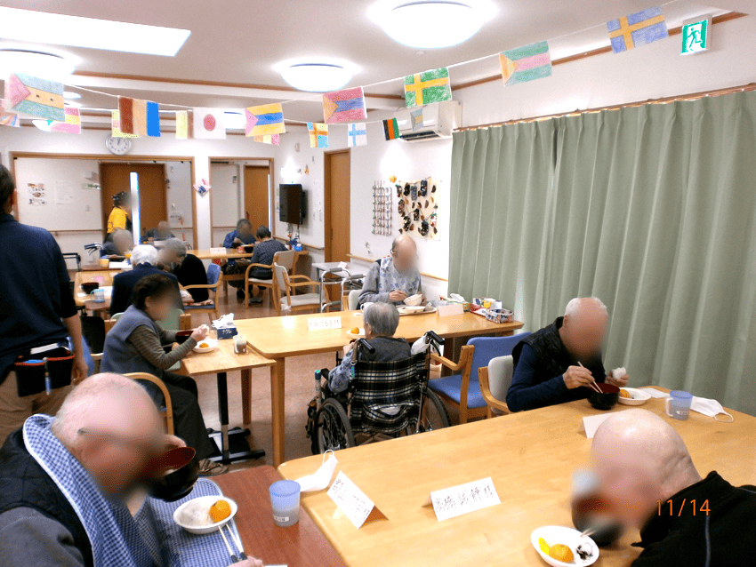 厨房スタッフには、いつも「家庭の味」を感じるものを作ってもらっています。ほっこりと心にしみる味に、利用者様、スタッフも安らぎの時間でした。