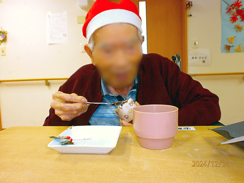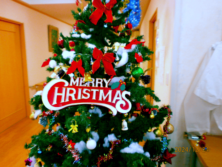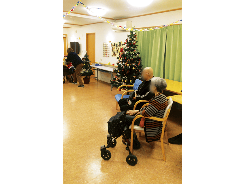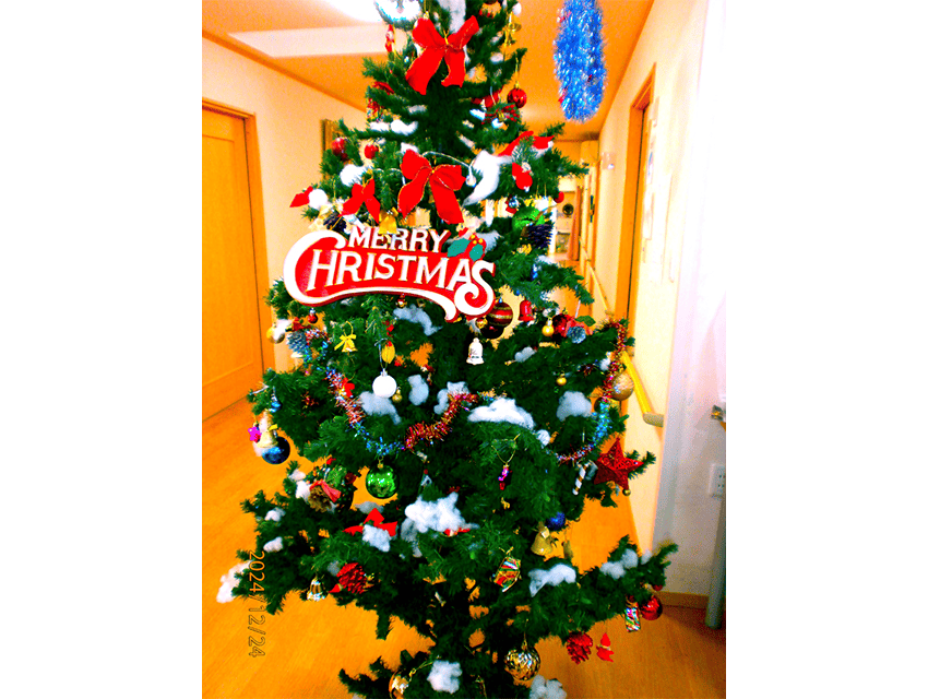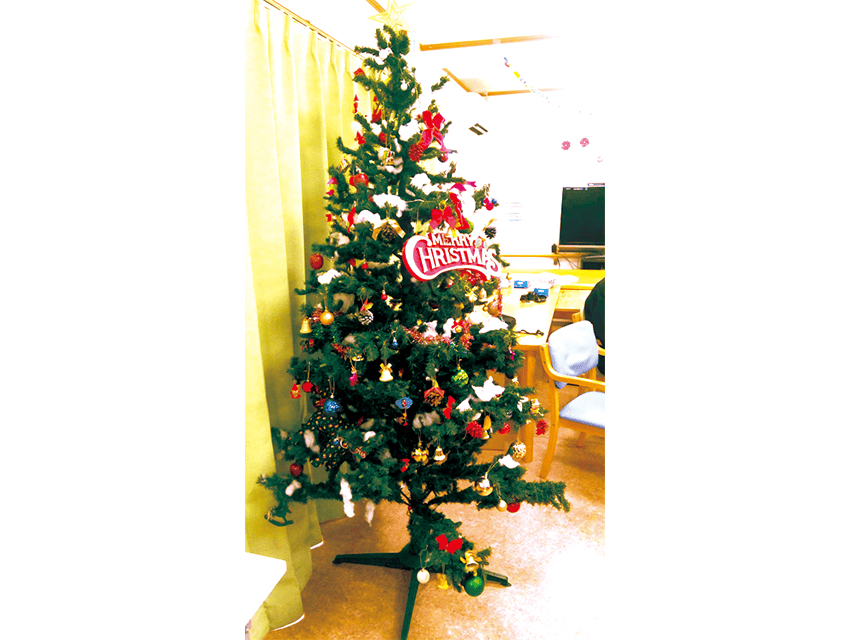 こすもす園では今月に入ってから徐々にクリスマスの飾りつけが行われ、クリスマスの雰囲気に包まれていきました。ツリーの飾りつけは利用者様に手伝っていただいたもの。皆さんの美的センスによってとても素敵なツリーや飾りになったんですよ。