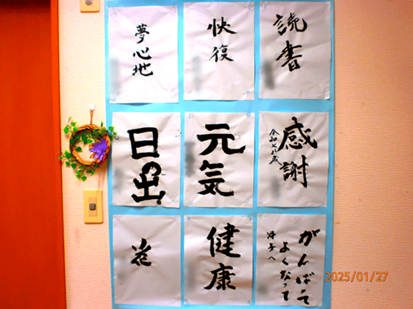 新年を迎え、今月のレクリエーションは書き初めが行われました。