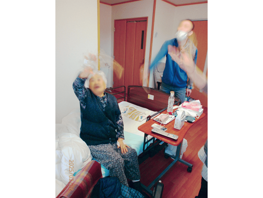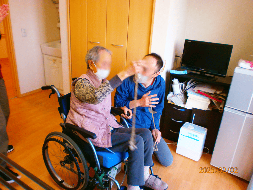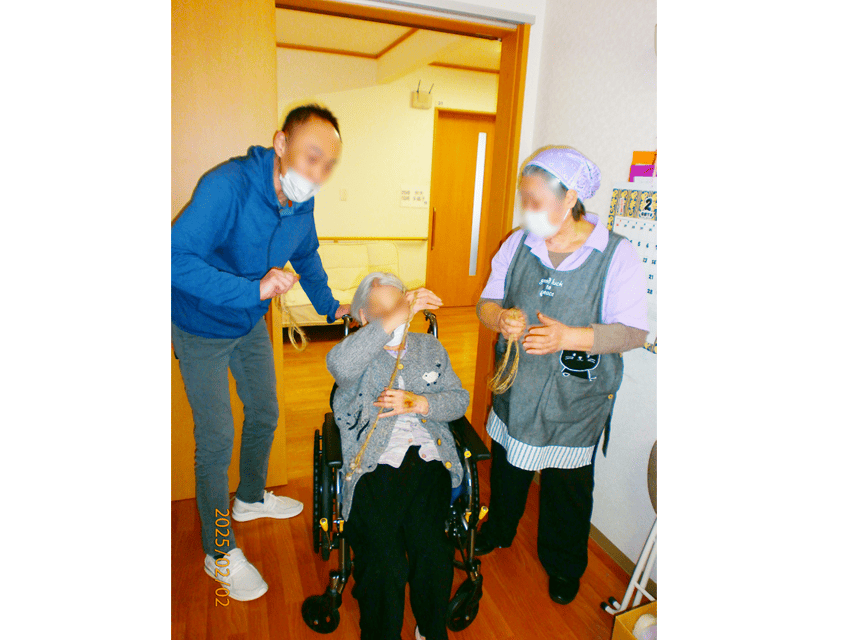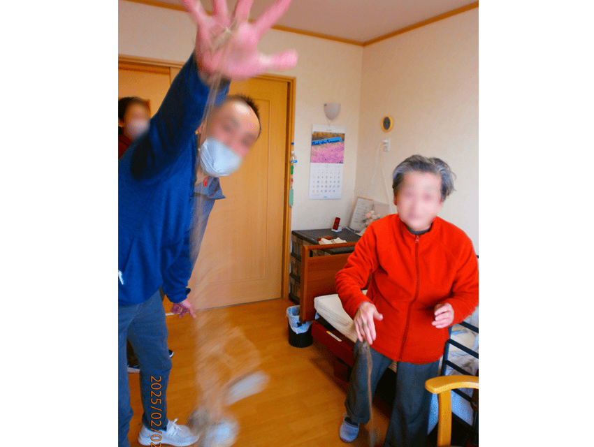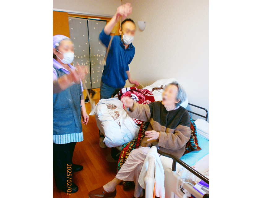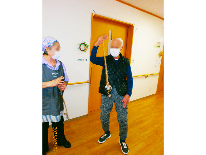 今年は施設長自らが各居室を廻り、各お部屋からリビング等、くまなく福を招き入れて鬼を追い払うことが出来ました。