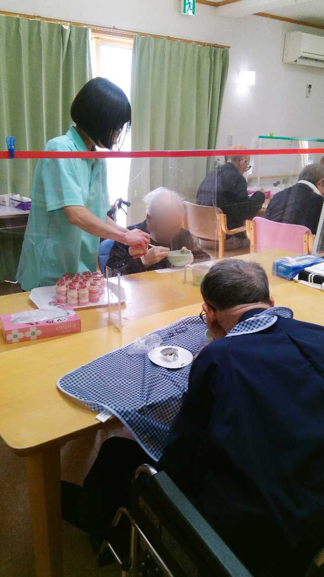割ってもらったりいつもより豪華なお祝い御膳を楽しんだり、職員の緊張とは逆に和やかに進んでいきました。 100歳の利用者様にも喜んでもらえたのではと思っています。