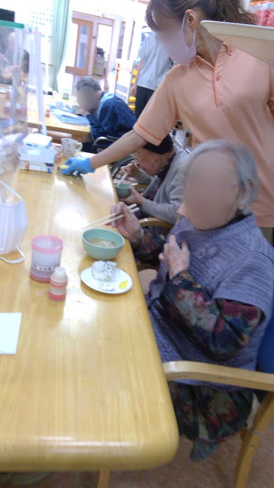 昼食には鉄火丼を召し上がっていただきました。ほかの利用者様からも「毎日誰か誕生日ならいいな(笑)」と笑い声が上がっておりました。 新たな施設生活で、ご苦労やご不安が多いかとお察しいたします。
