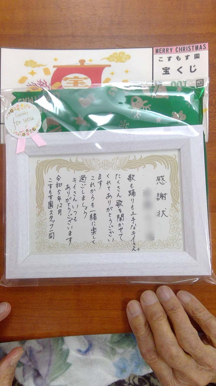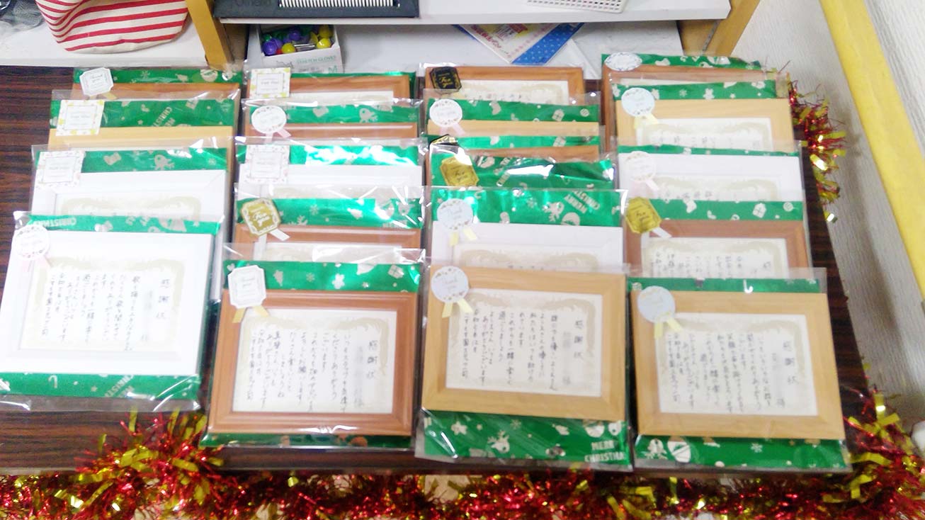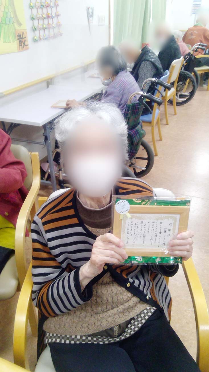 スタッフから全利用者様への感謝状をお一人お一人にお渡しさせていただきました。