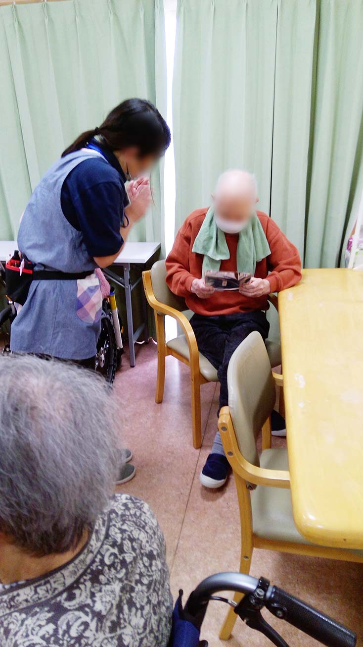 入所者様のお顔がとてもイキイキされていたのもうれしかったのですが、それ以上にスタッフの笑顔がうれしく感じました。