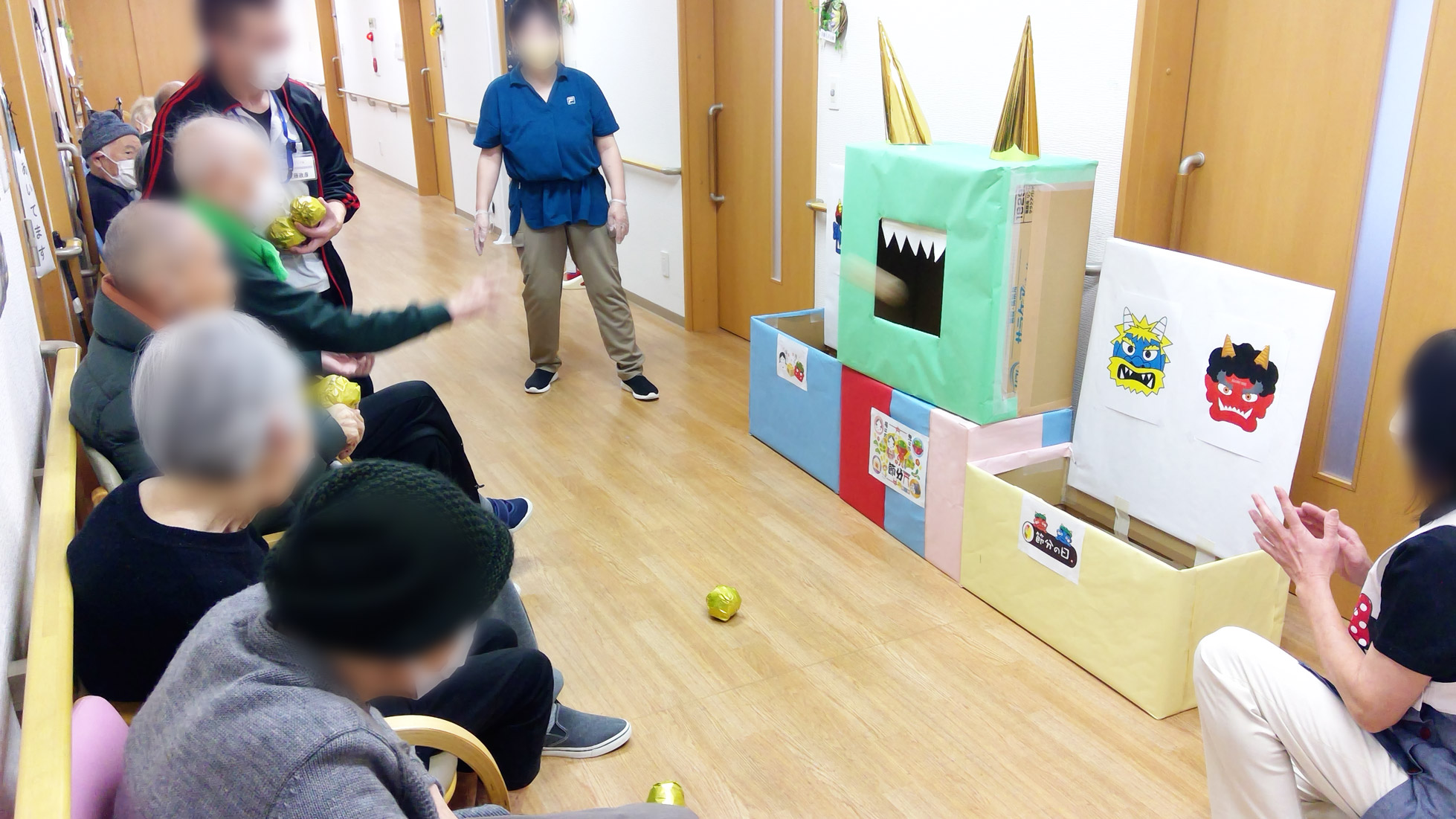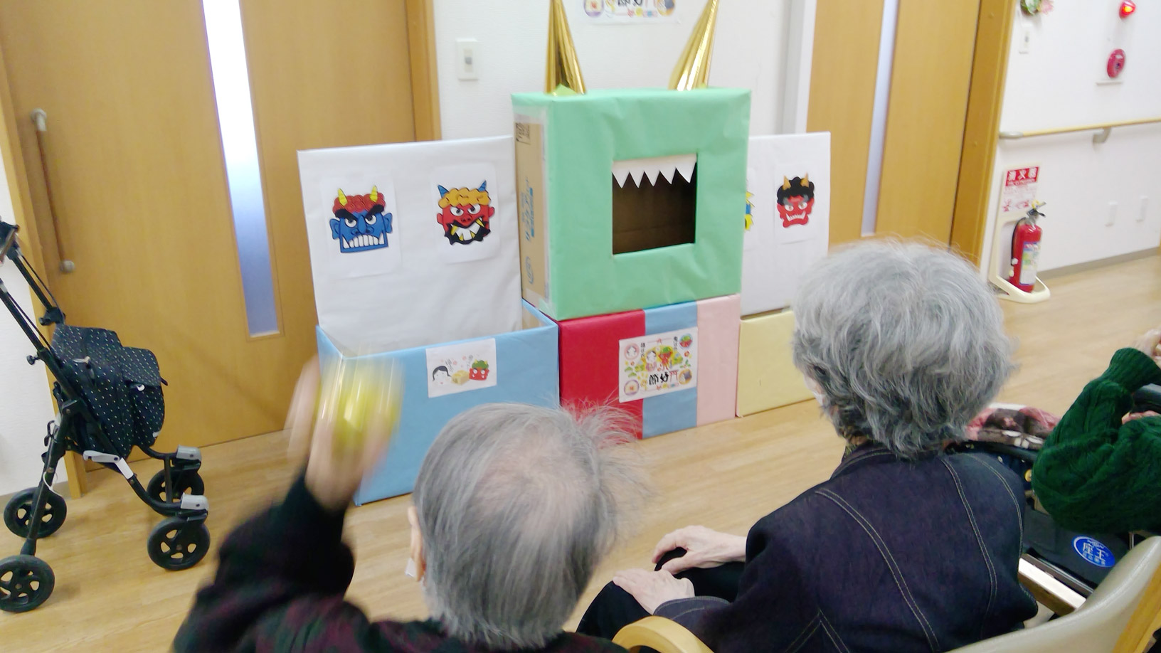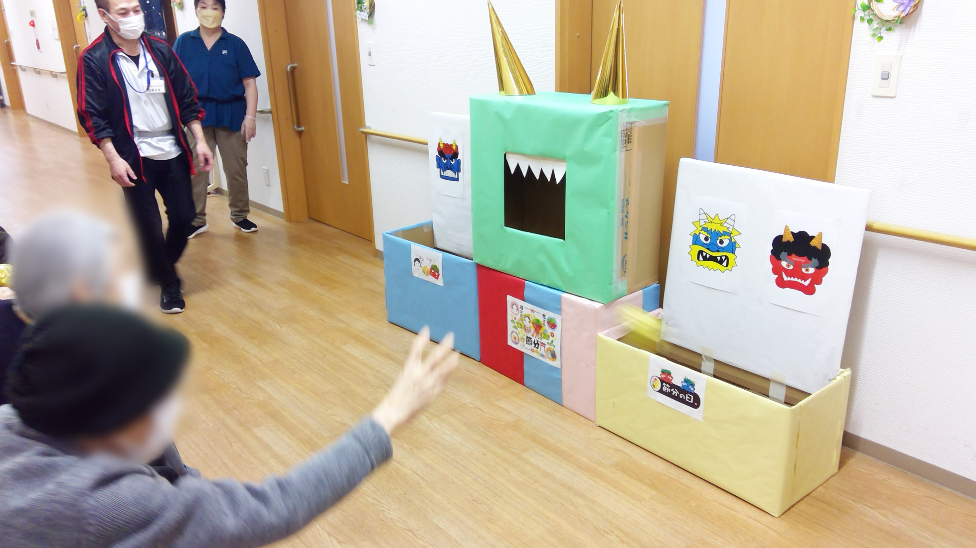 鬼に見立てたボードに向かいボールを投げ入れるゲーム感覚で皆様楽しんでいただくことが出来ました。