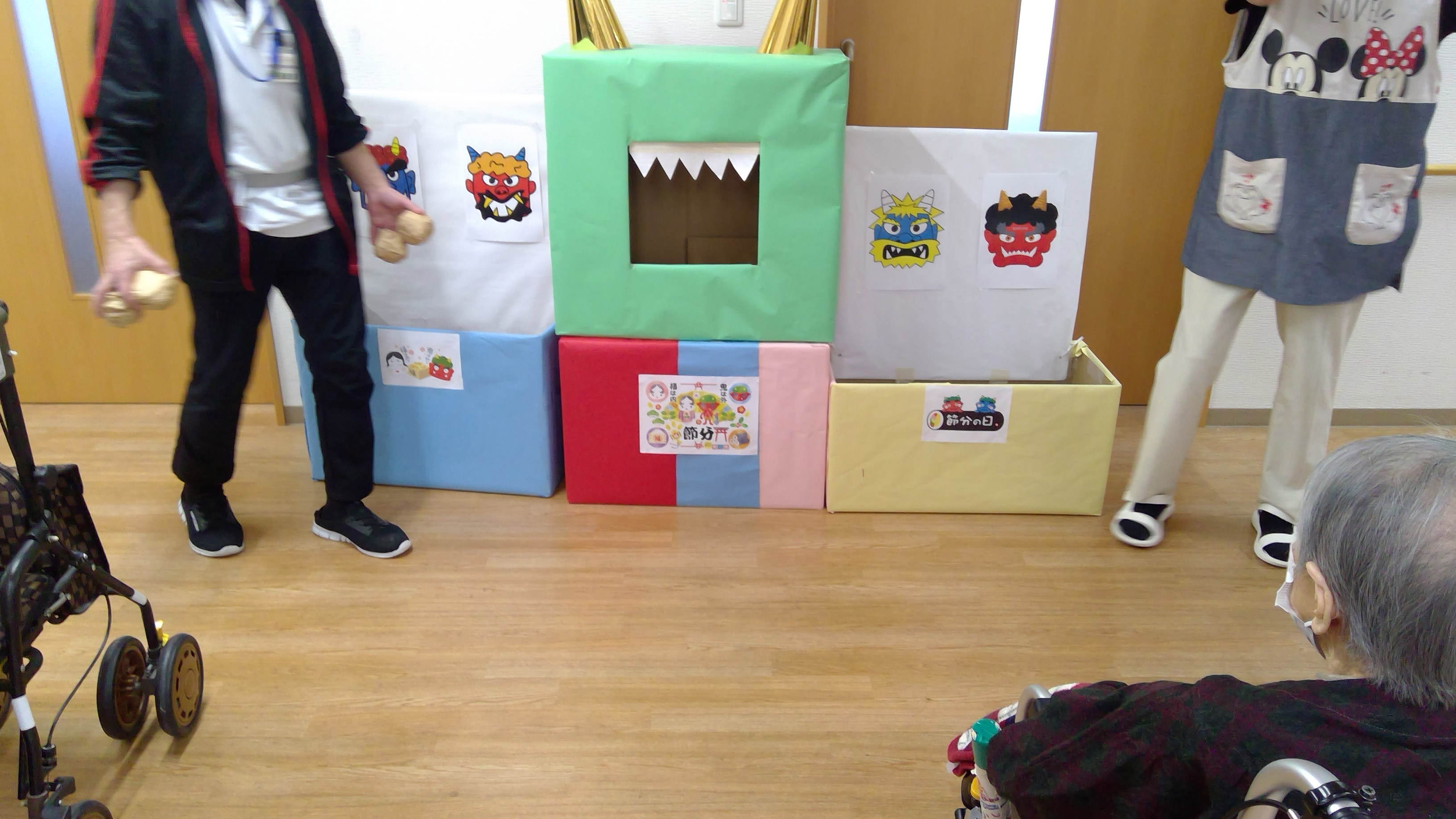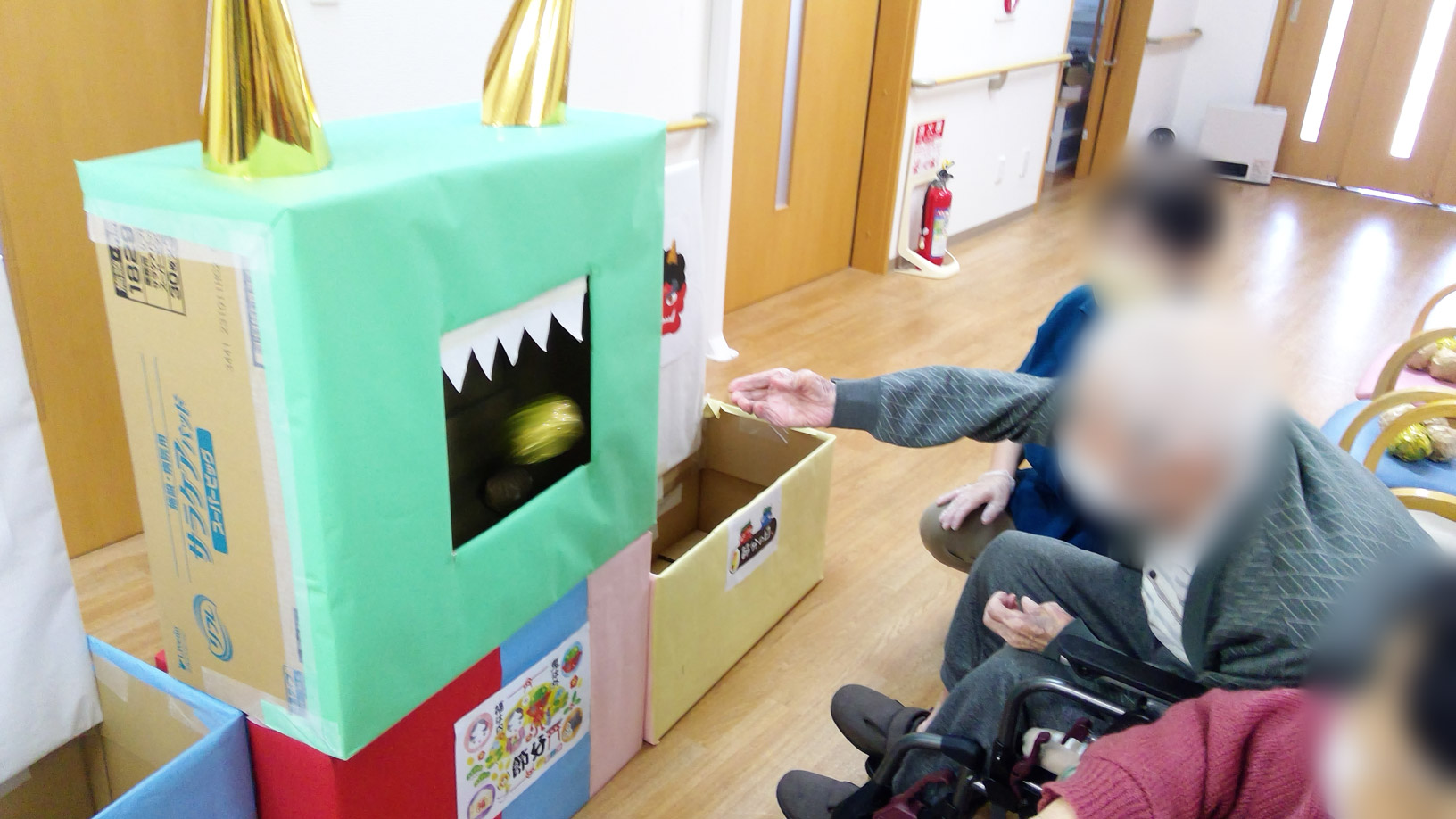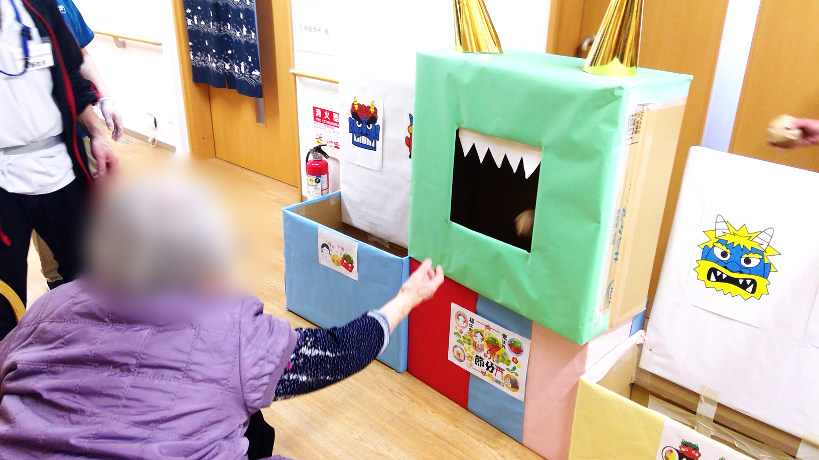 鬼に見立てたボードに向かいボールを投げ入れるゲーム感覚で皆様楽しんでいただくことが出来ました。