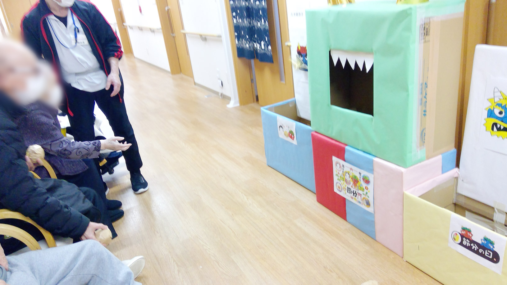 インフルエンザやコロナの猛威に負けぬよう、皆様と一緒に豆まきを行いました。