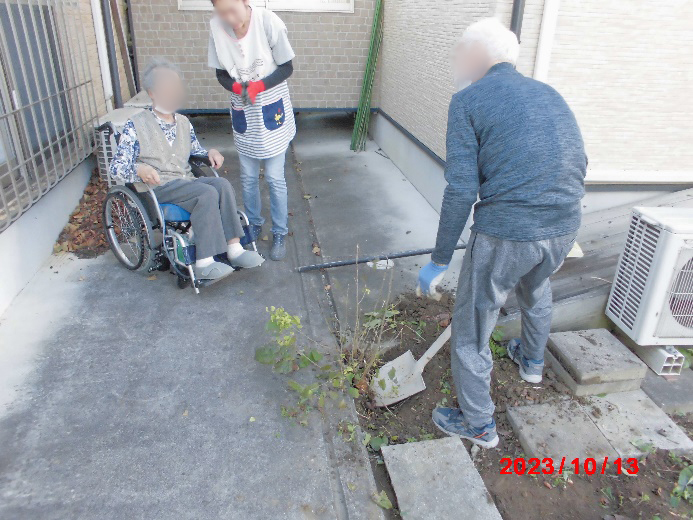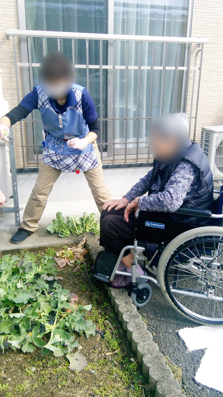 実は、こすもす園では小さな畑があります。 皆さんご存じでしたか? 今年の夏はキュウリやシソなど夏野菜を栽培しておりました。残念ながら猛暑のため豊作とまではいきませんでしたが、利用者様にも収穫を手伝っていただき、こすもす園の食卓を彩ってくれました。畑作業が大好きな利用者様にとっても楽しい時間だったようです。