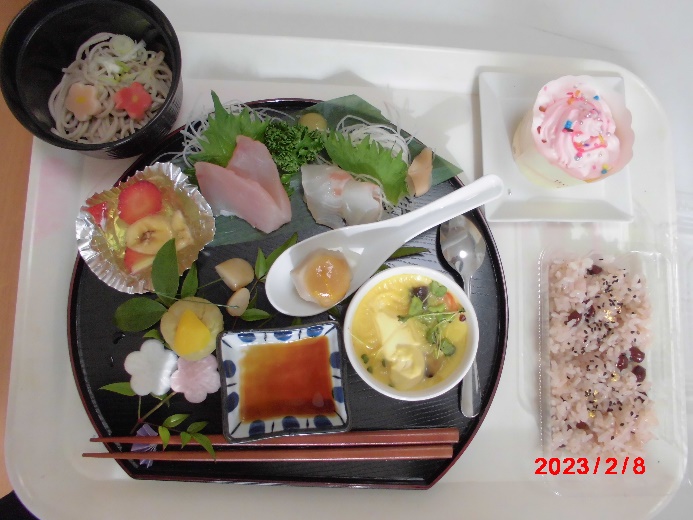「食べることは生きる事」 栄養補給としてただ食べていただくだけではなく、旬の食材やメニューを通じ季節感を感じていただき、食べることを通じ、食べることの楽しみ、生きることの楽しみへと繋がってほしいと厨房スタッフは常に意識して取り組んでおります。 そんな厨房スタッフの隠し味(想い)が秘められた行事食でした。