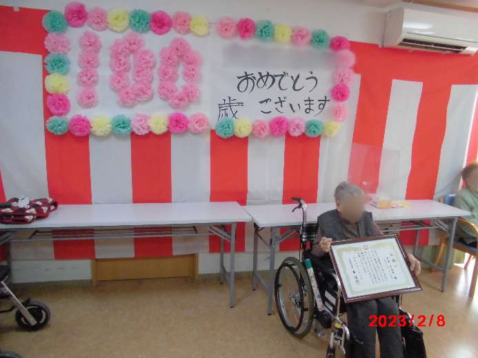 当施設には今年101歳を迎える方が1名、100歳を迎える方が1名いらっしゃいます。
