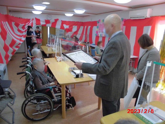 これからも、利用者様全員に元気に過ごしていただき、第2回、3回とこのような式ができることを楽しみに、利用者様やご家族様と過ごしていきたいと思います。