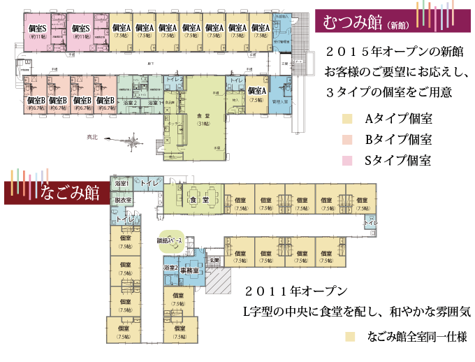 3タイプの部屋を備えた むつみ館(新館)が増設。あたらしいこすもす園が始まります。